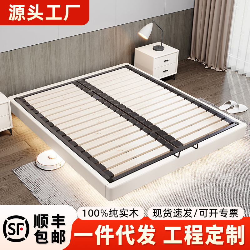침대 옆 매달린 가죽 침대 없음 현대 간단한 마스터 침실 더블 2 m x 2 m 2 그물 붉은 빛 고급 단단한 나무 매달린 침대 프레임