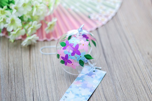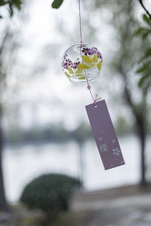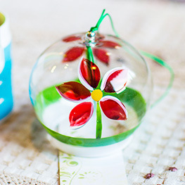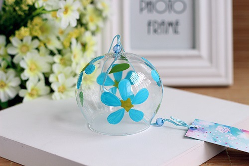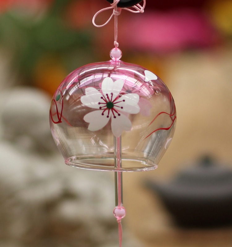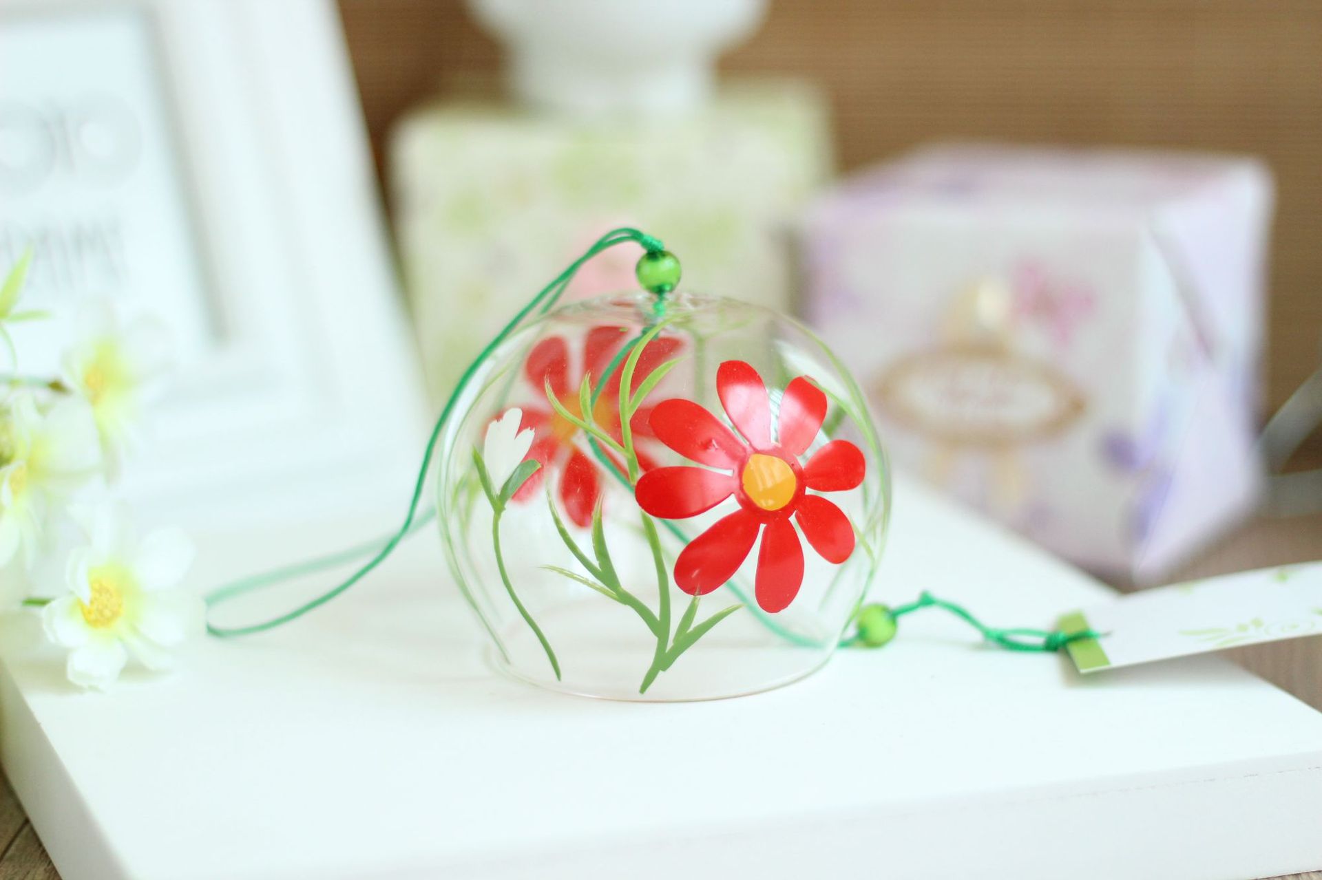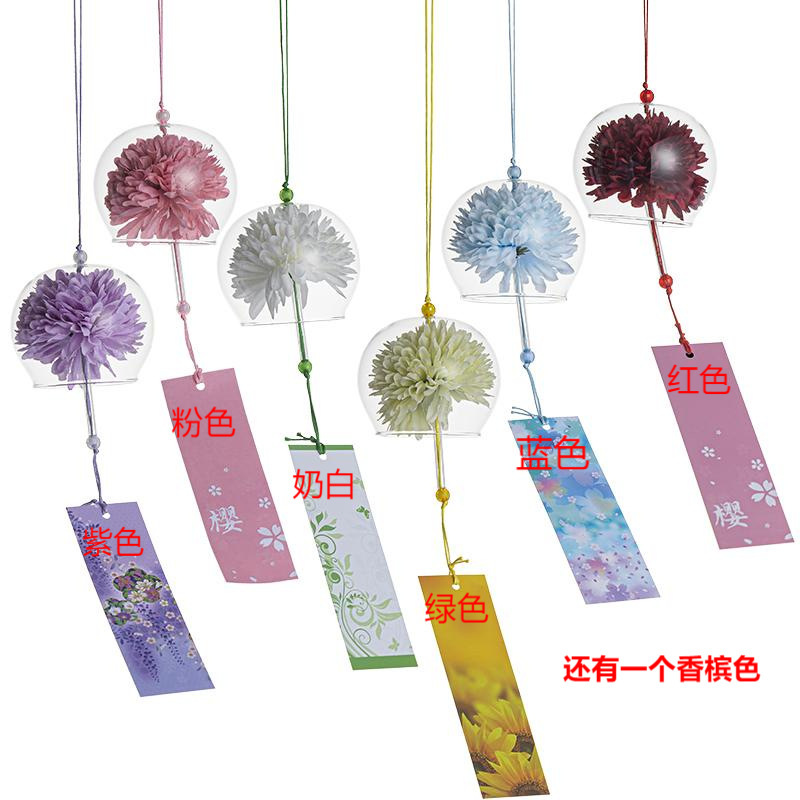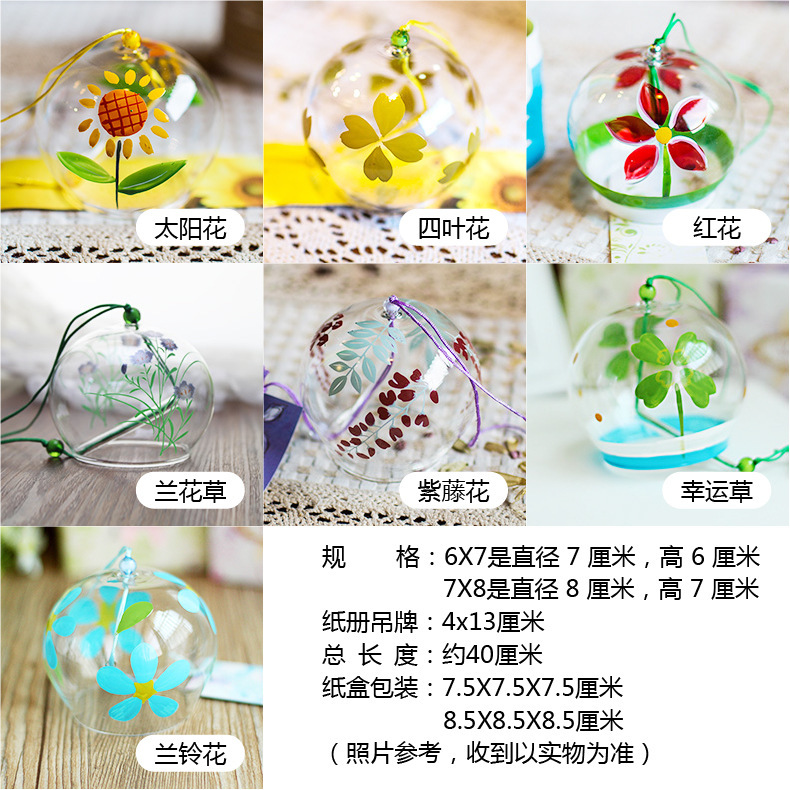 공장 손으로 그린 유리 바람 차임 창조적 인 선물 경치 일본 유리 바람 차임 작은 꽃 유리 바람 차임