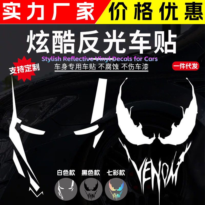 개성 넘치는 창의적인 자동차 스티커, 아이언맨, 베놈 스티커, 어벤져스, 오토바이, 자동차 반사 스티커