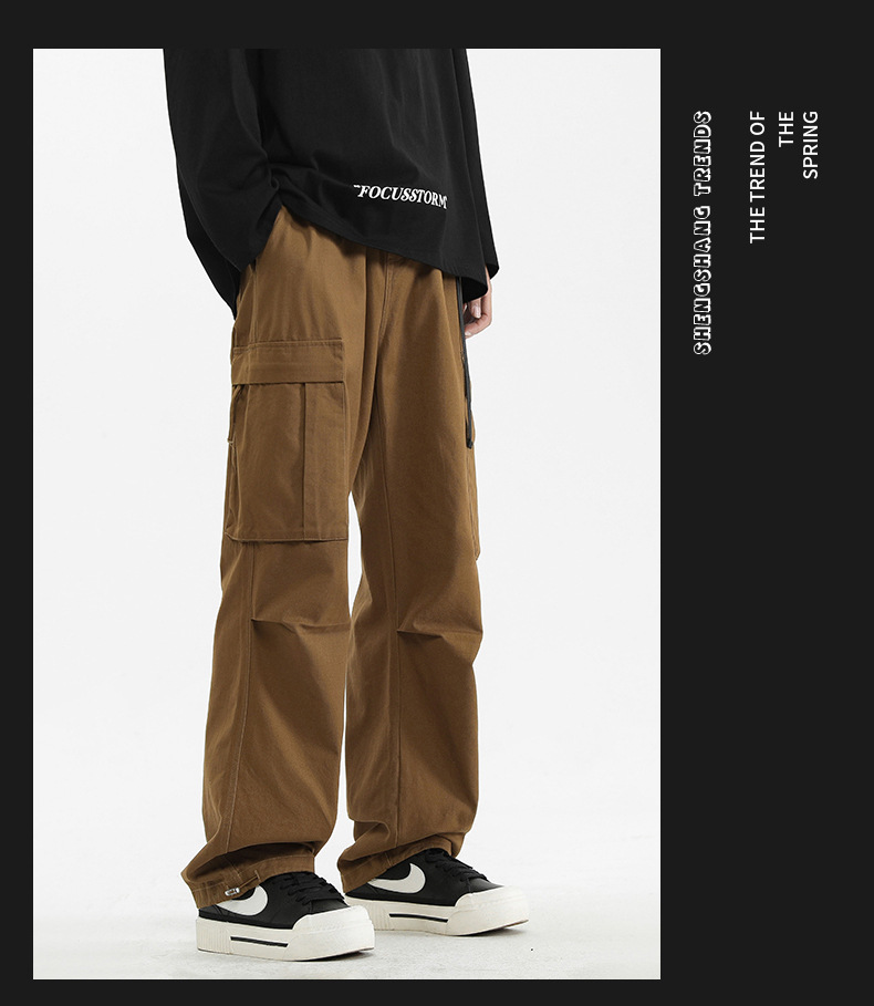 ACU 남성복 | 남성용 작업복 바지 2026 가을 루즈핏 트렌디 브랜드 남성 캐주얼 롱 팬츠 멀티 포켓 아메리칸 스타일 스트레이트 팬츠스토어 가기
