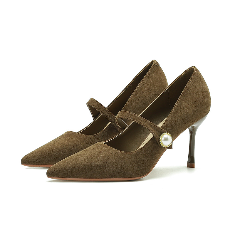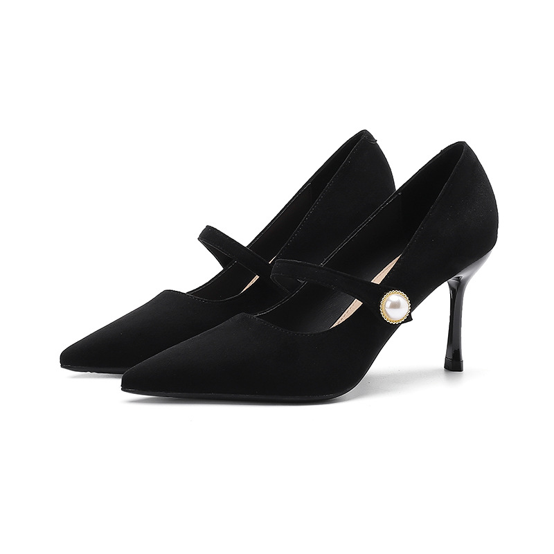 811-B1 섹시한 뾰족코 얇은 굽 하이힐 여성용 겨울 2025 신상품 원피스 벨벳 진주 하이힐 여성용스토어 가기