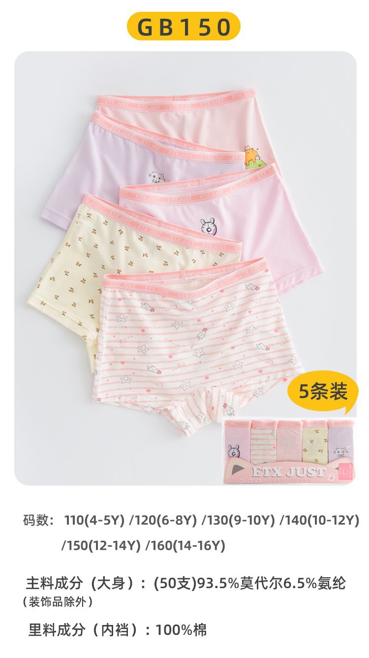 ETX 소녀 속옷 모달 복서 바지 원활한 빠른 건조 대형 어린이 복서 반바지 학생면 속옷 도매