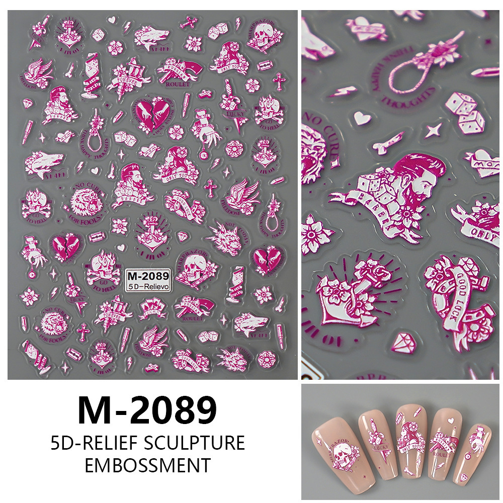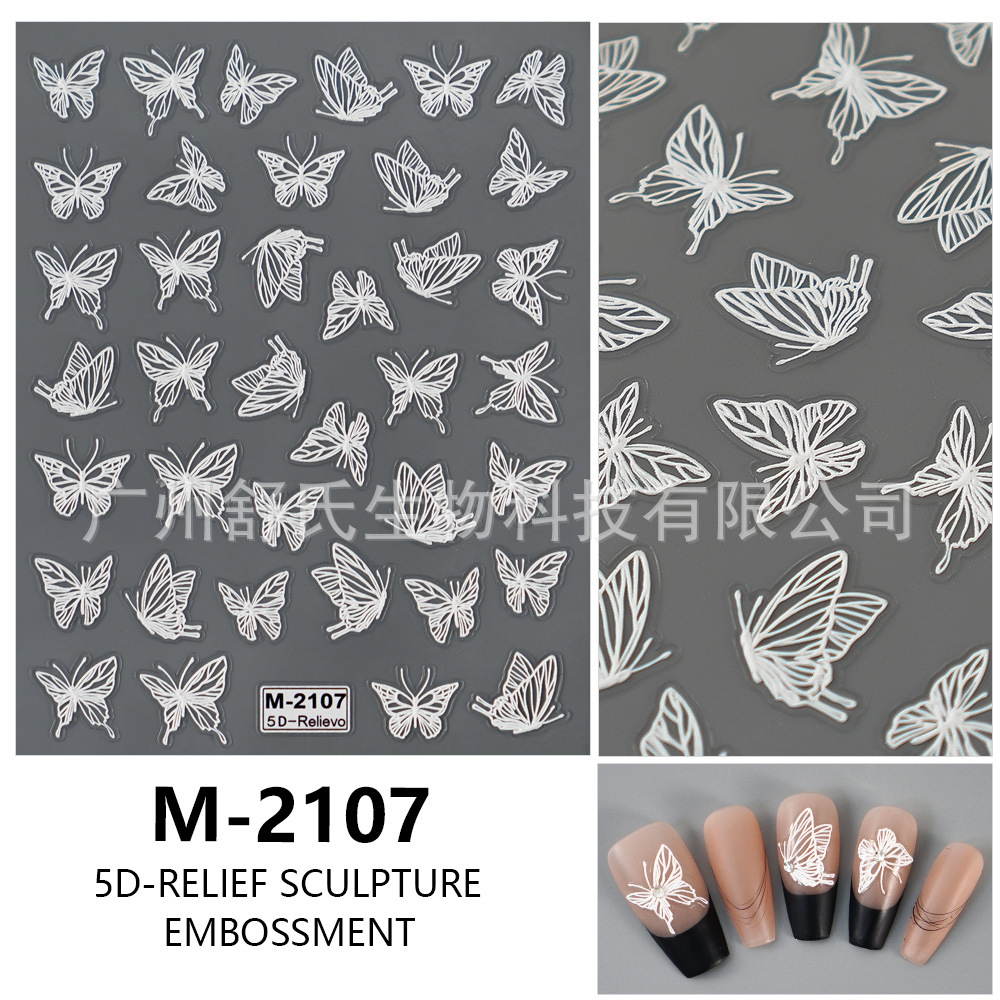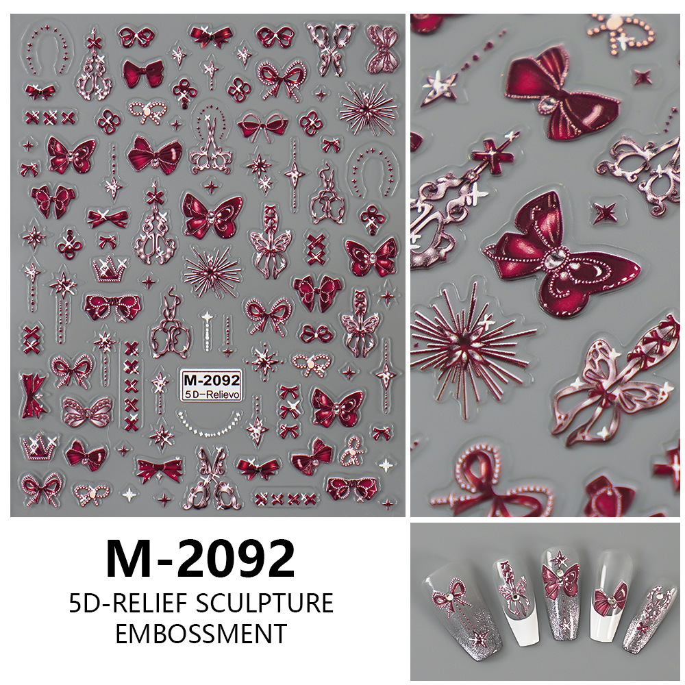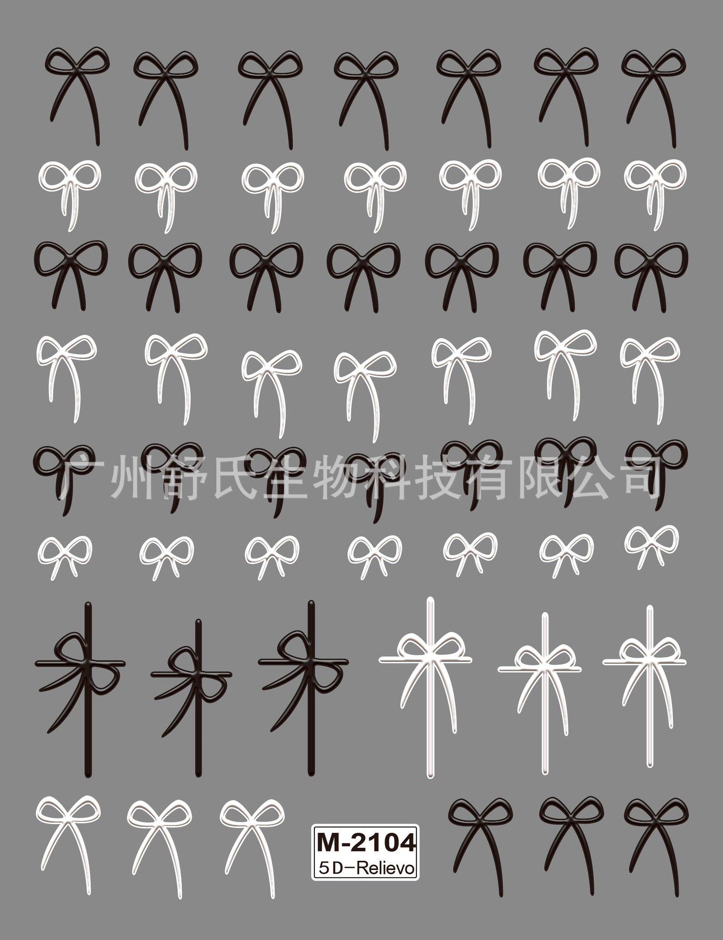국경을 넘는 새로운 엠보싱 스타일의 핑크와 화이트의 귀여운 리본 스티커, 심플하고 달콤한 네일아트용 리본 스티커