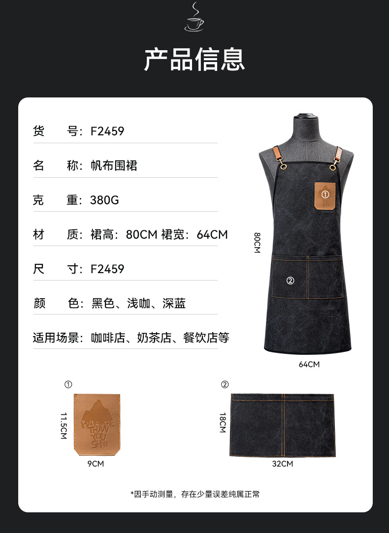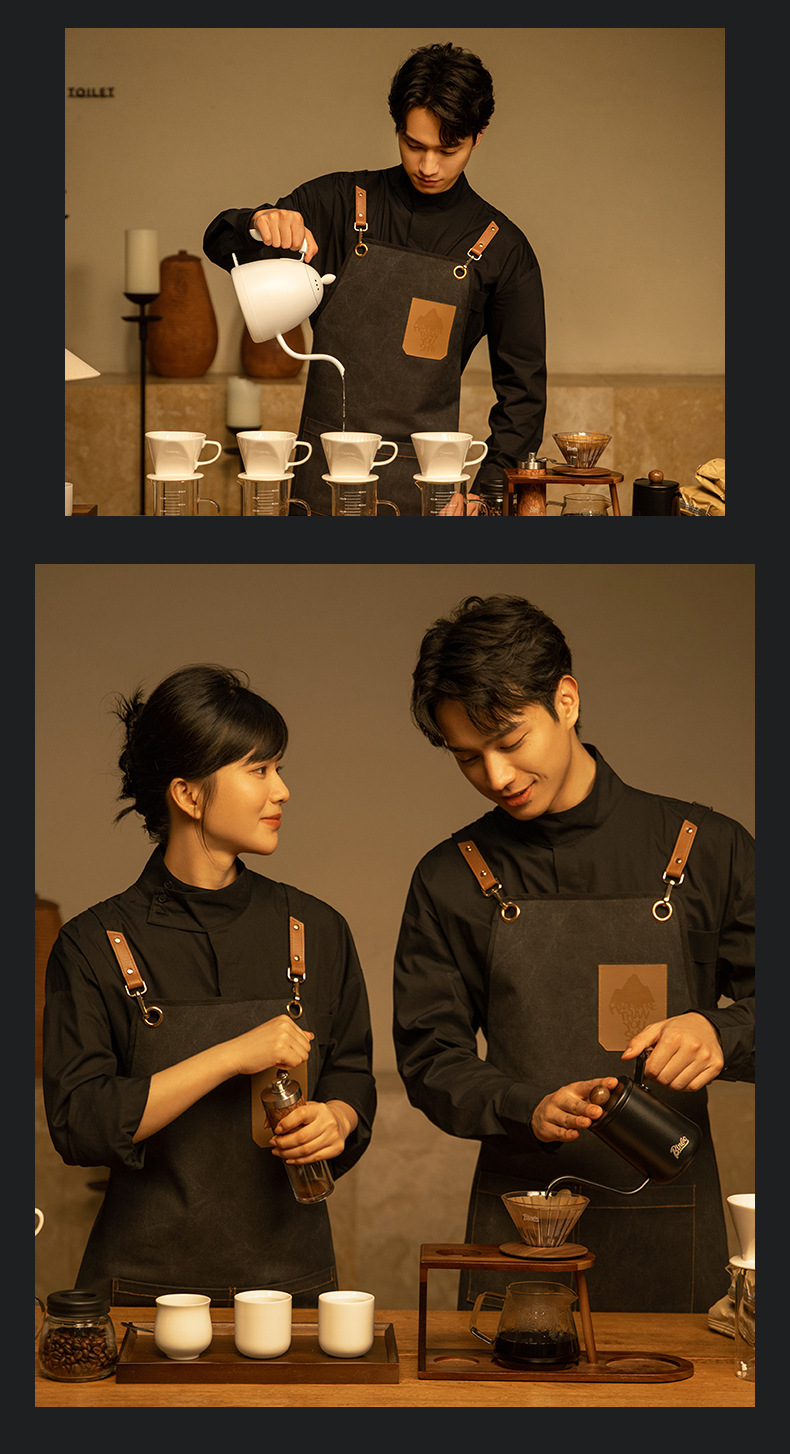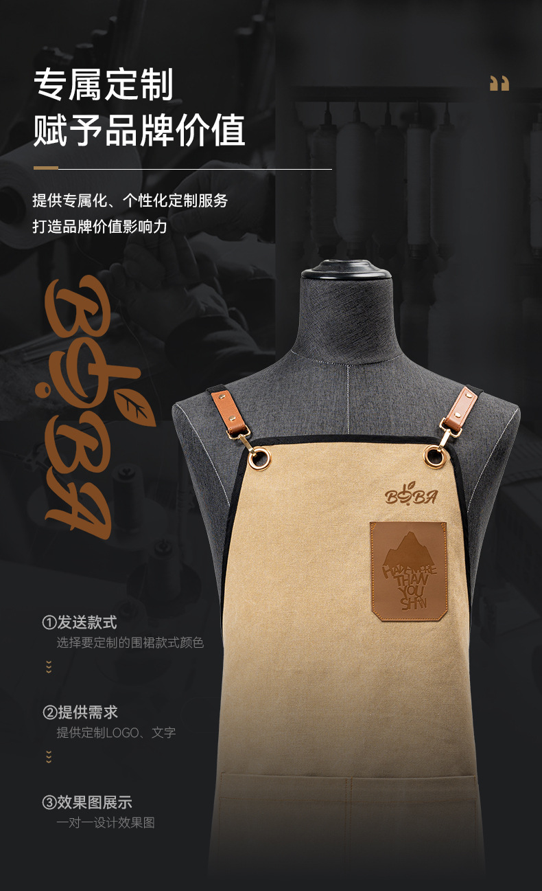 두꺼운 굵은 곡물 캔버스 Barista 앞치마 로고 베이킹 우유 차 가게 꽃 바 바텐더 작업 옷 허리