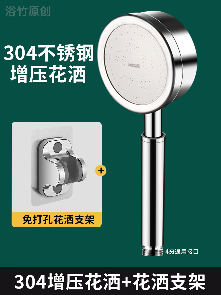• 304 스테인레스 스틸 필터 부스터 샤워 헤드 + 펀치 프리 브래킷