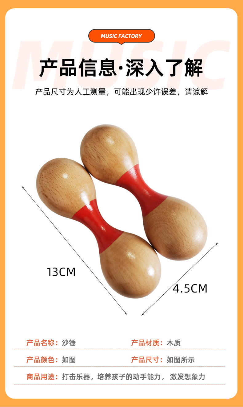 도매 Orff 타악기 너도밤 나무 양방향 모래 망치 유아 모래 공 모래 반지 양방향 나무 모래 망치