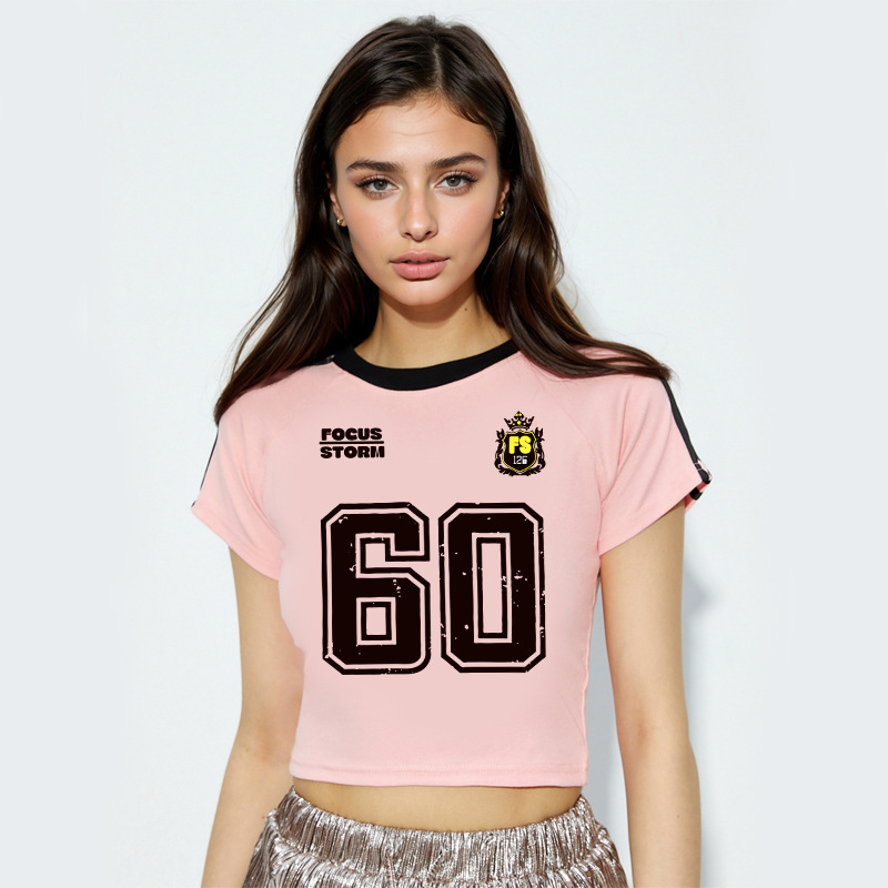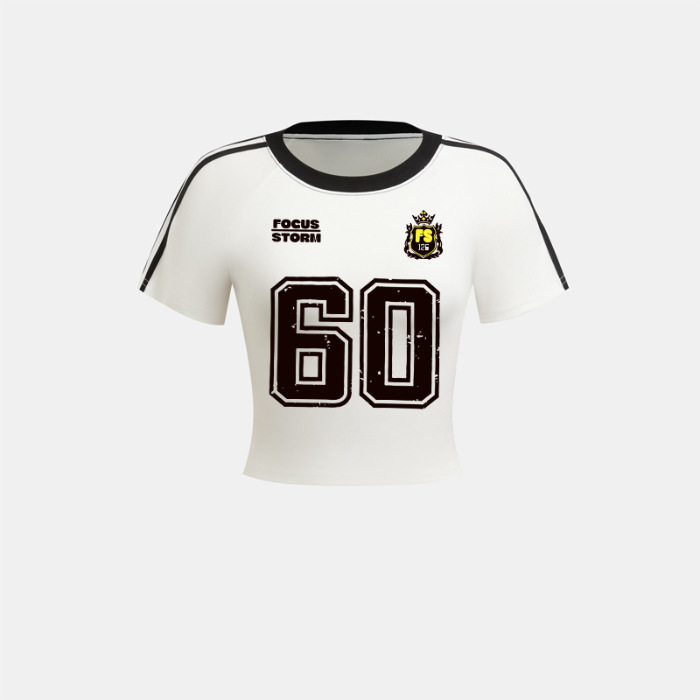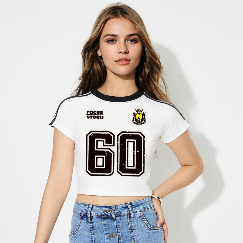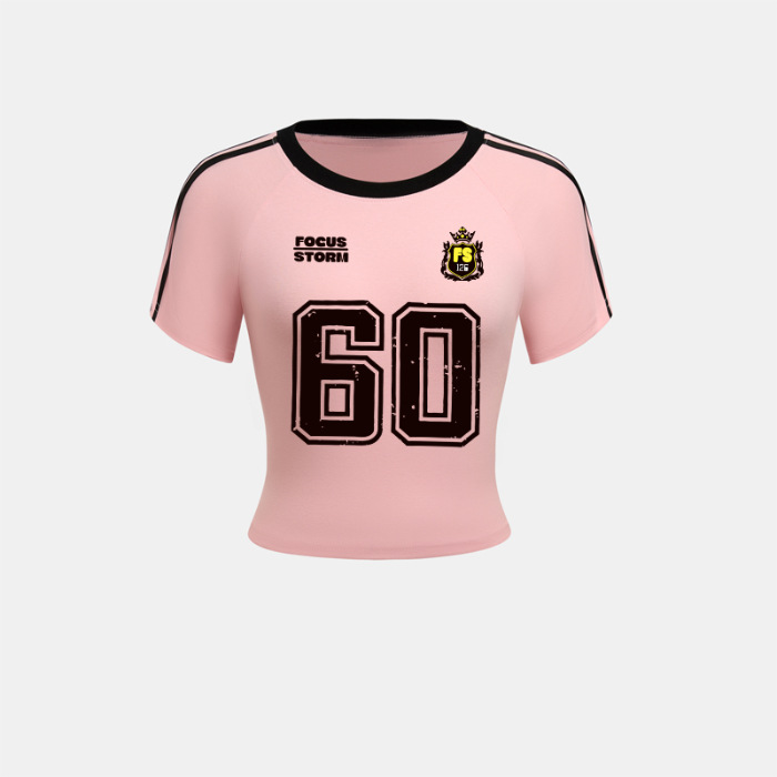 미국 레트로 3 바 스티칭 프린트 반팔 티셔츠 여성용 쇼트 여름 캐주얼 스포츠 스타일 탑 저지 트렌디 T