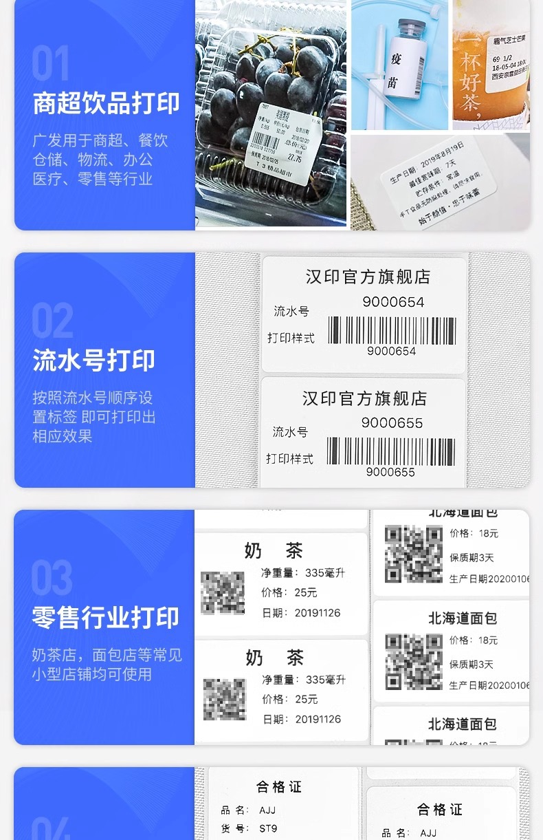 한인 바코드 프린터 스티커 의류 태그 슈퍼마켓 밀크티 가게 블루투스 라벨 프린터 바코드