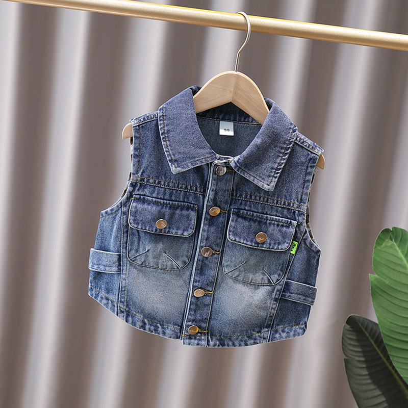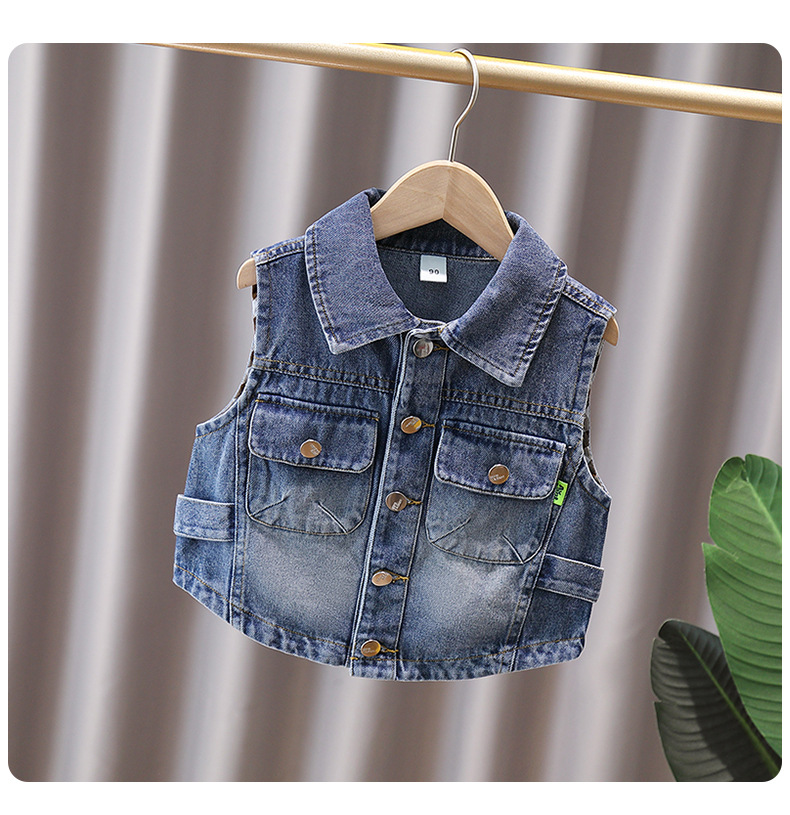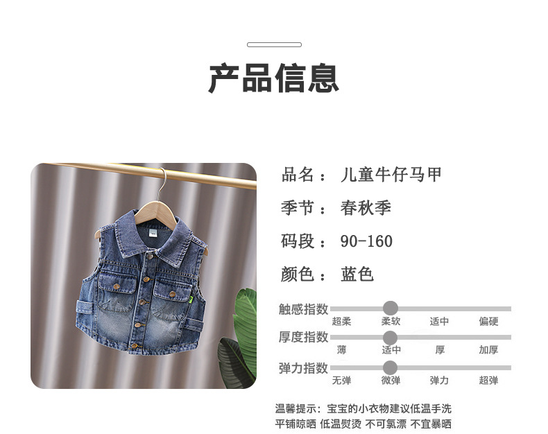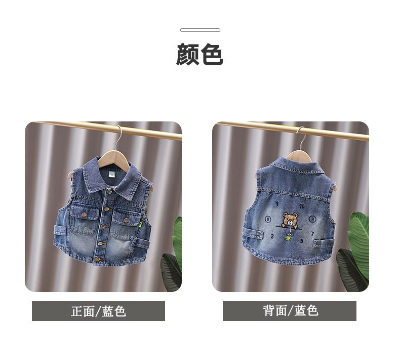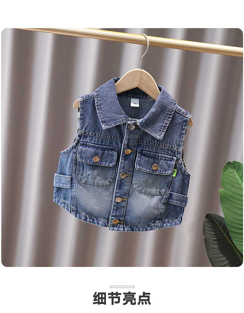 소년 '데님 조끼 2024 년 새 어린이 가을 조끼 아기 조끼 착용 소년' 허리 코트 패션