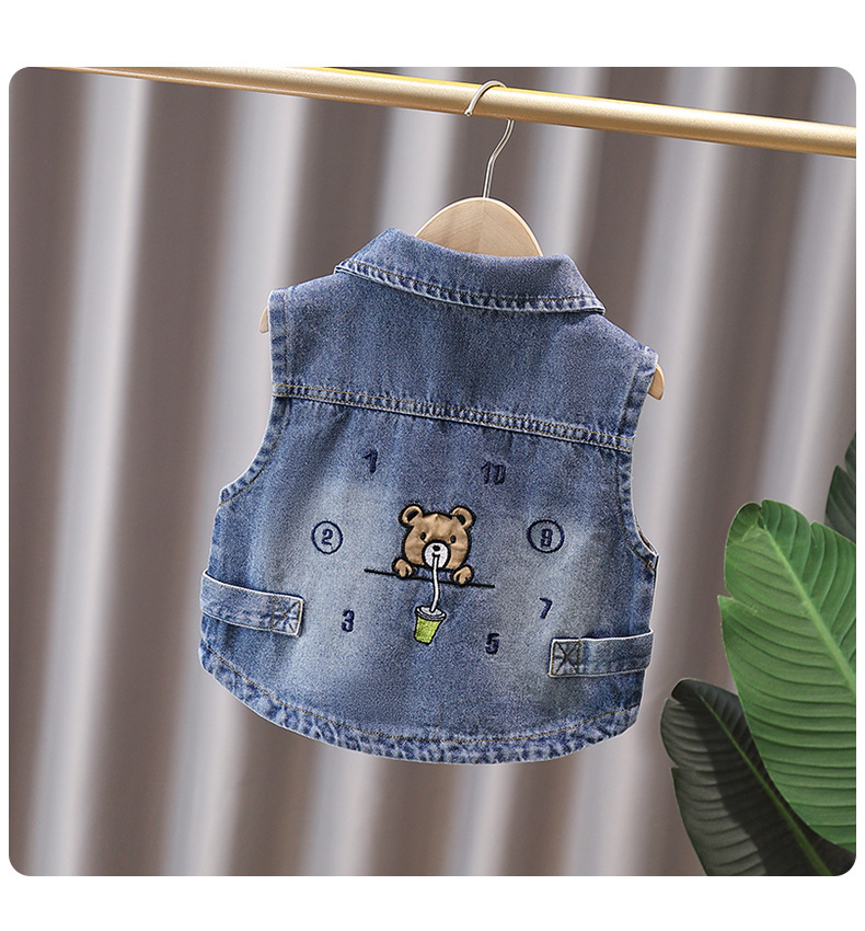 소년 '데님 조끼 2024 년 새 어린이 가을 조끼 아기 조끼 착용 소년' 허리 코트 패션스토어 가기