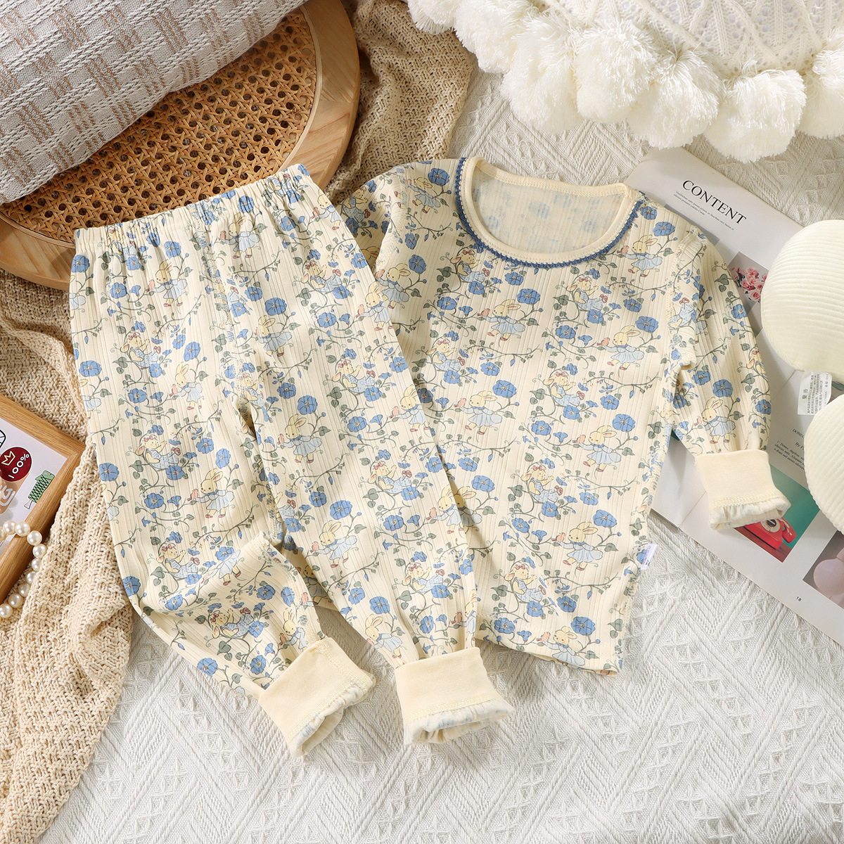 소년 소녀 아기 잠옷 가을 옷 가을 바지 세트 도매 어린이 한국식 뼈없는 속옷 가을과 겨울 면화 홈 의류