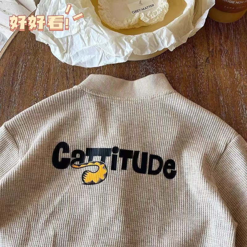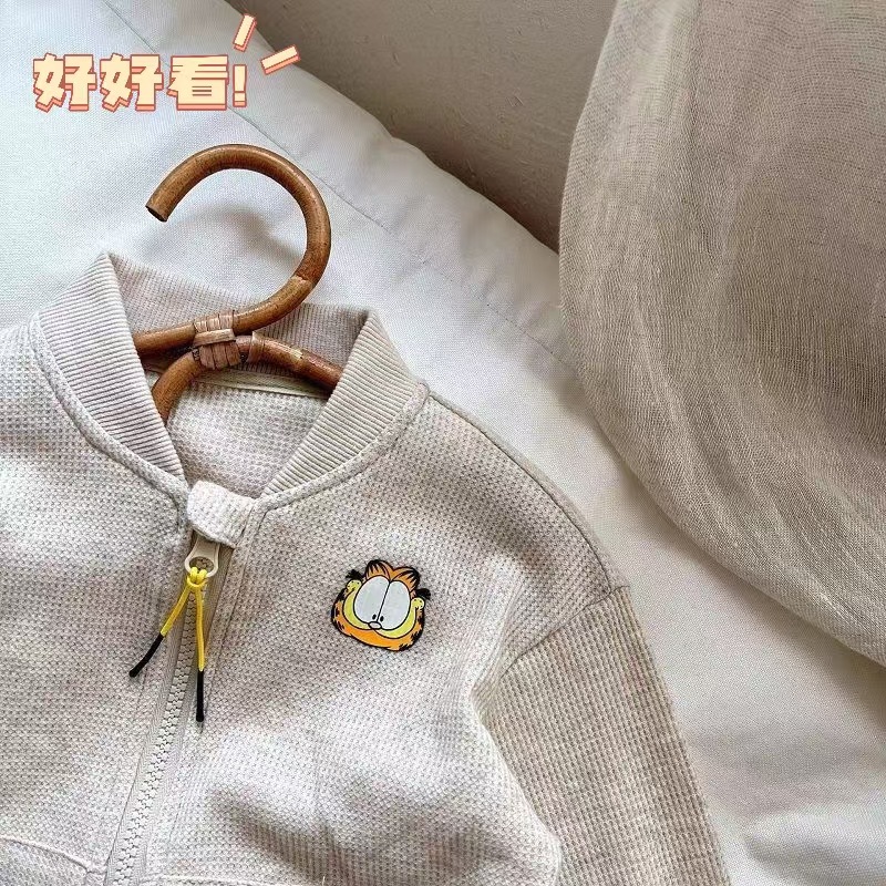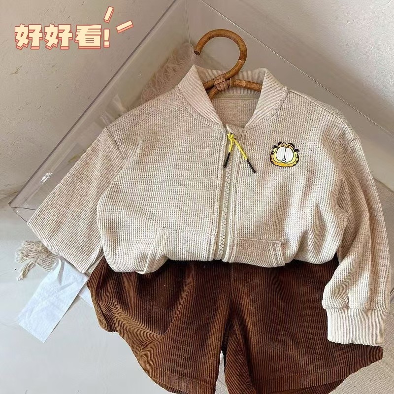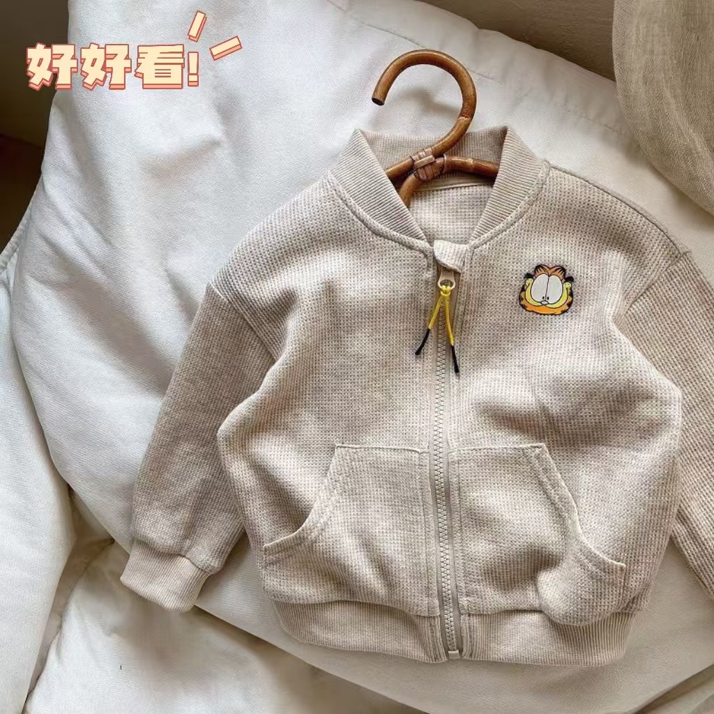 가을 한국 스타일 코트 중소 어린이 아기 봄과 가을 캐주얼 와플 코트 트렌디를위한 만화 지퍼 셔츠스토어 가기