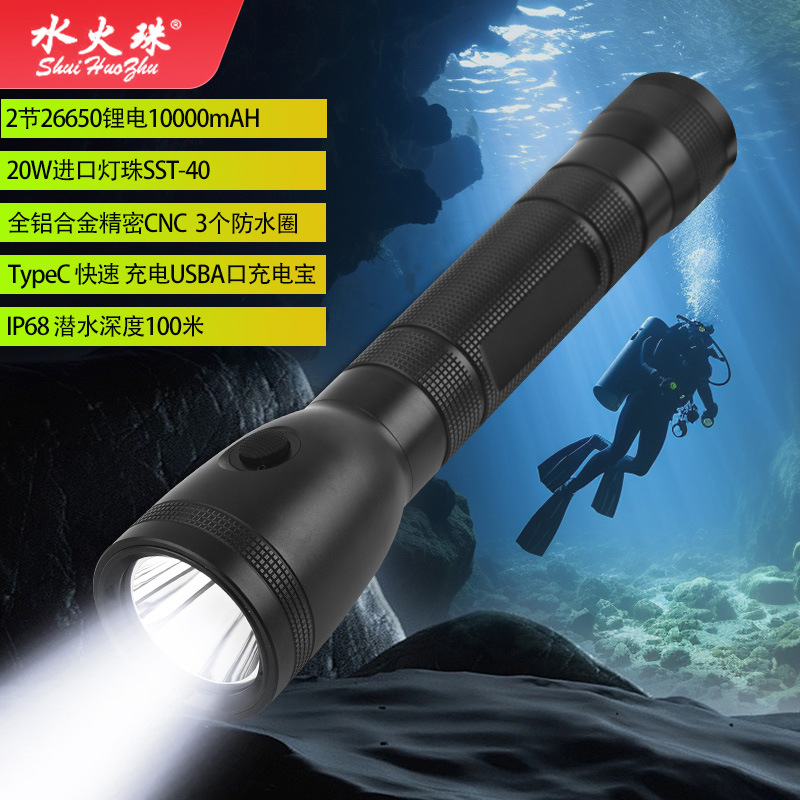 J21 강한 빛 높은 전력 다이빙 손전등 야외 전술 필드 IP68 방수 바다 작업 보안 캠핑