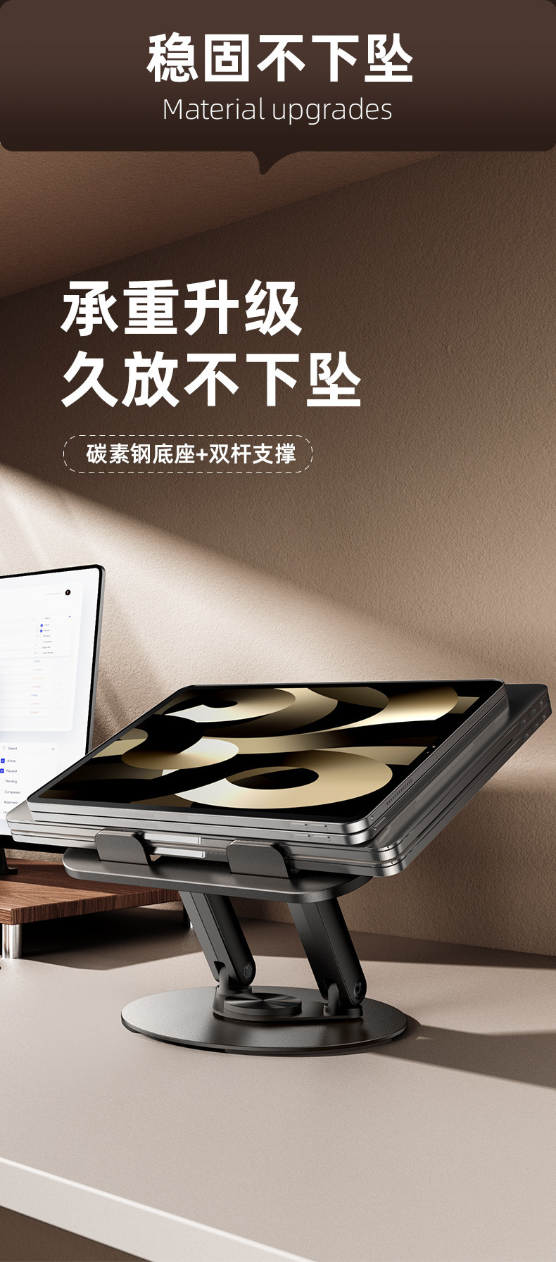 이중 폴 회전식 금속 데스크탑 태블릿 노트북 스탠드 접이식 보관 조절 가능한 다각도 지지대