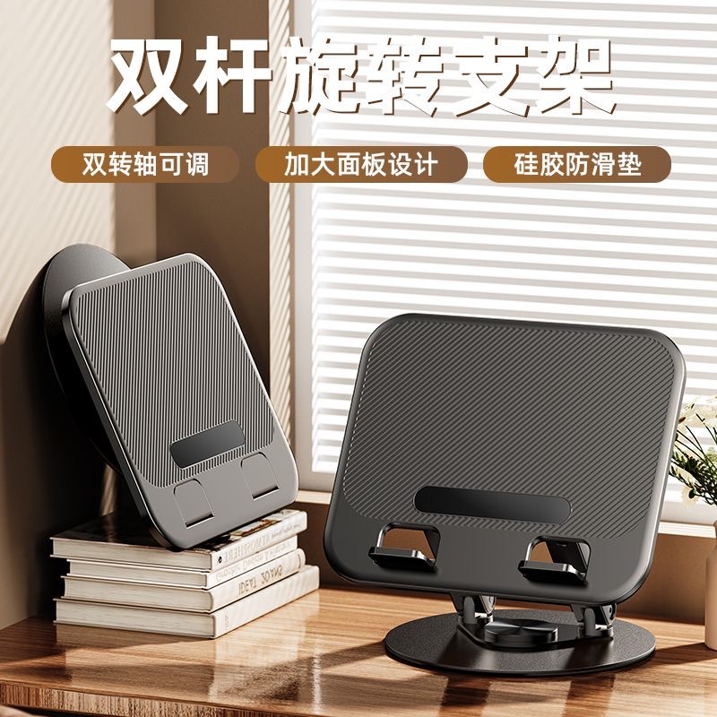 이중 폴 회전식 금속 데스크탑 태블릿 노트북 스탠드 접이식 보관 조절 가능한 다각도 지지대스토어 가기