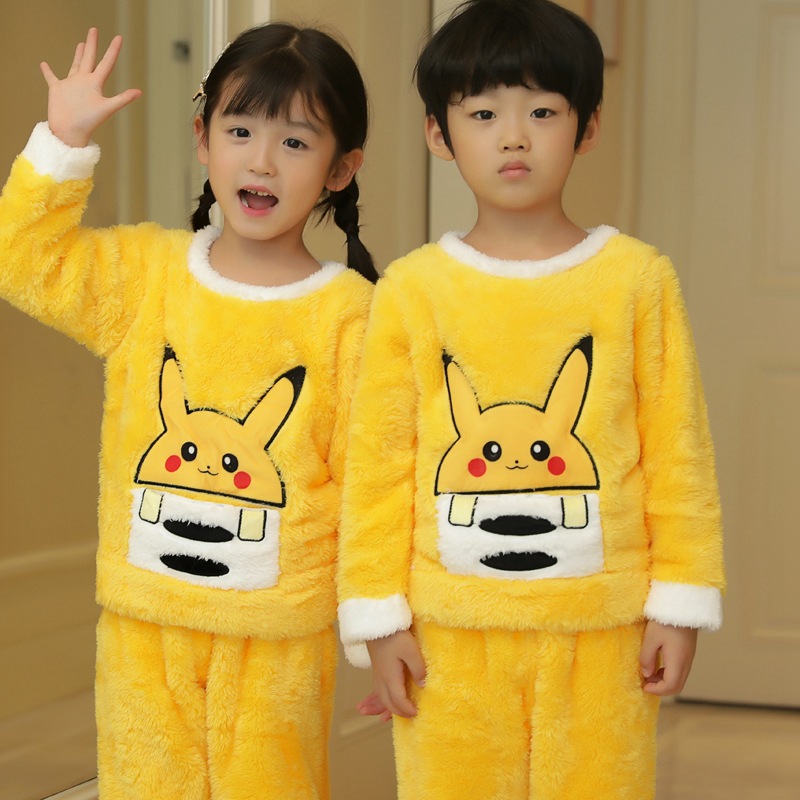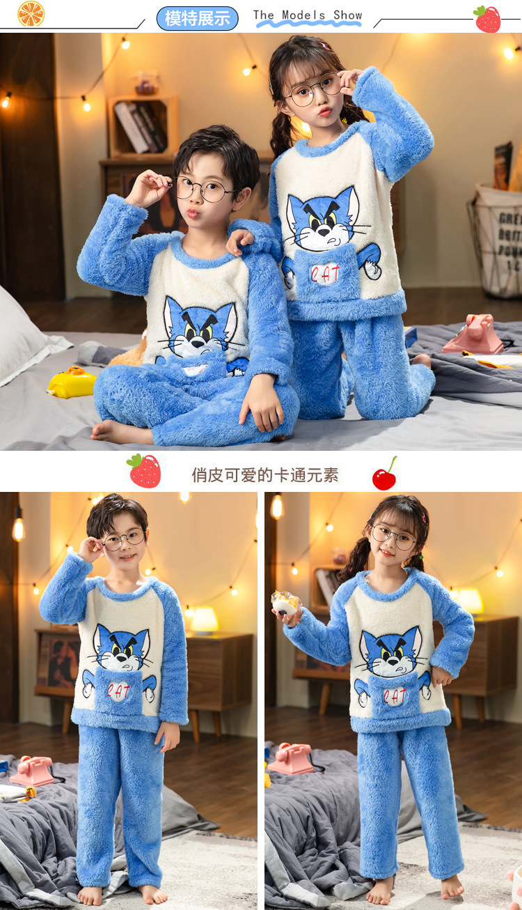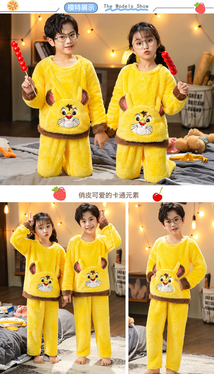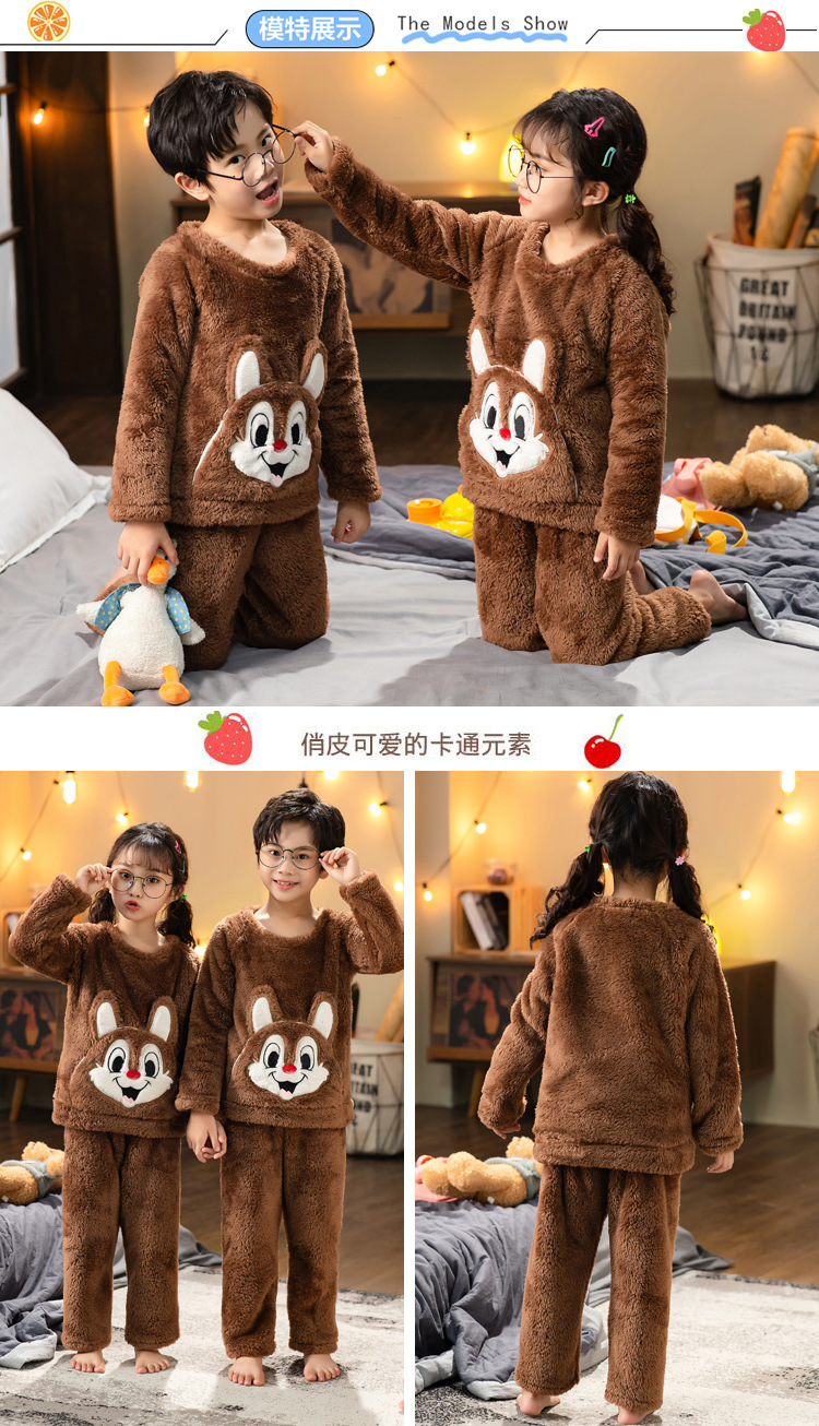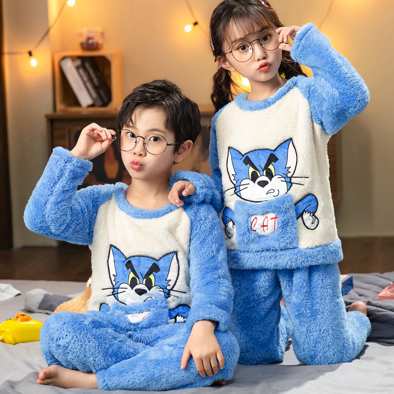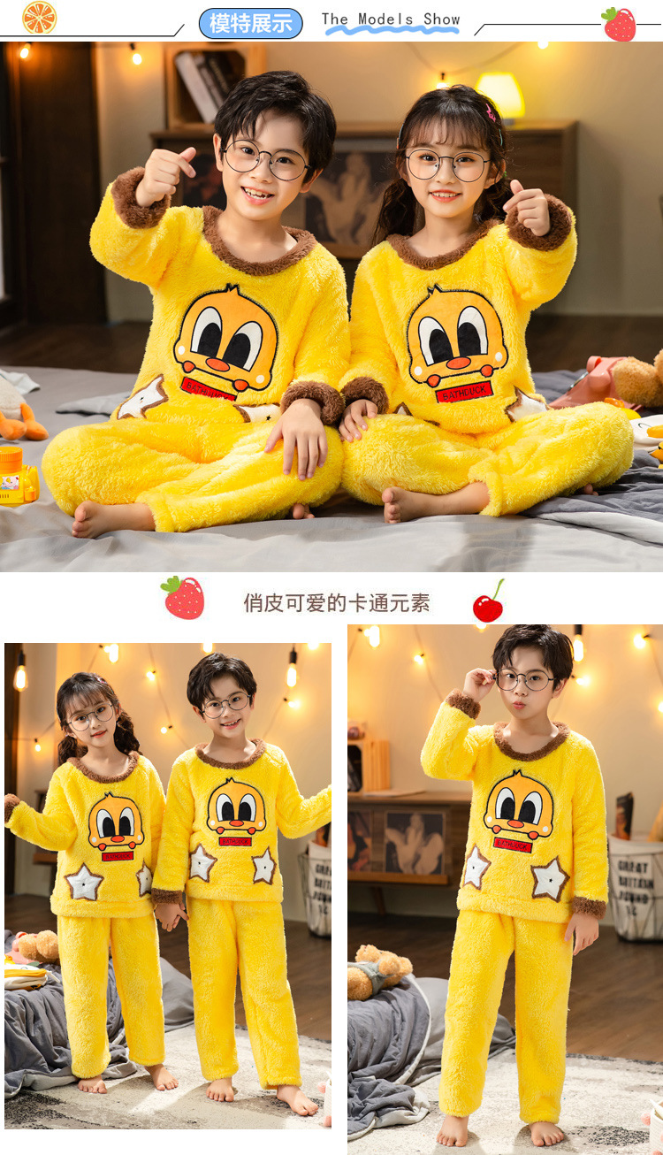가을과 겨울 따뜻한 어린이 플란넬 파자마 세트 산호 양털 홈 옷 단색 긴 머리 두꺼운 소년과 소녀스토어 가기