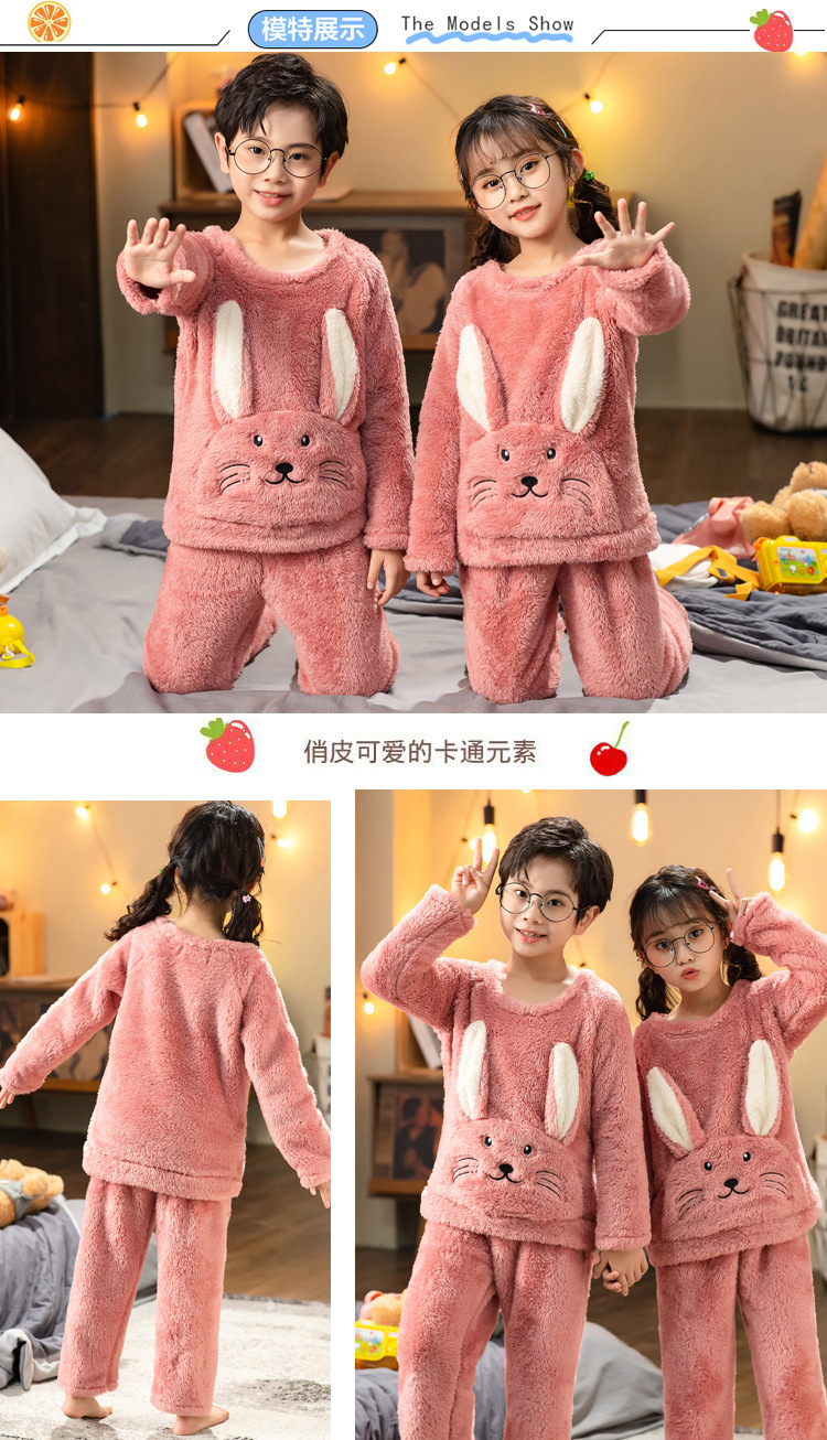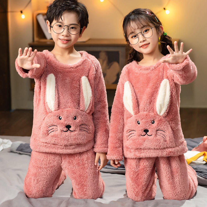 가을과 겨울 따뜻한 어린이 플란넬 파자마 세트 산호 양털 홈 옷 단색 긴 머리 두꺼운 소년과 소녀