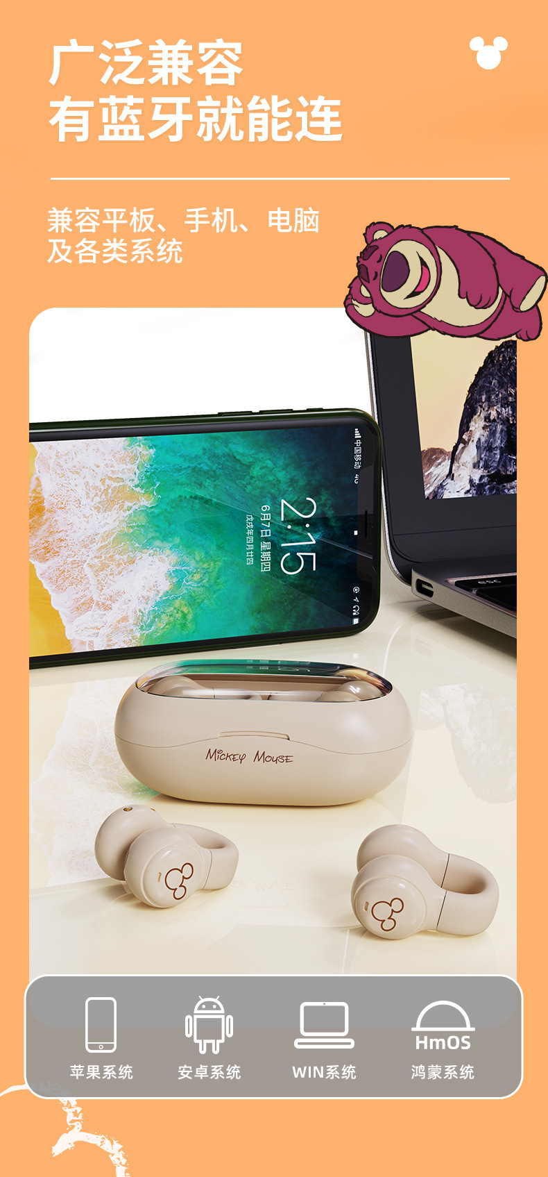 국경 간 새로운 개인 모델 디즈니 클립 인 이어 블루투스 헤드셋 무선 공기 뼈 전도 헤드셋 디즈니/DN12스토어 가기