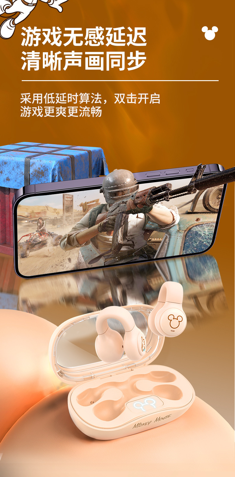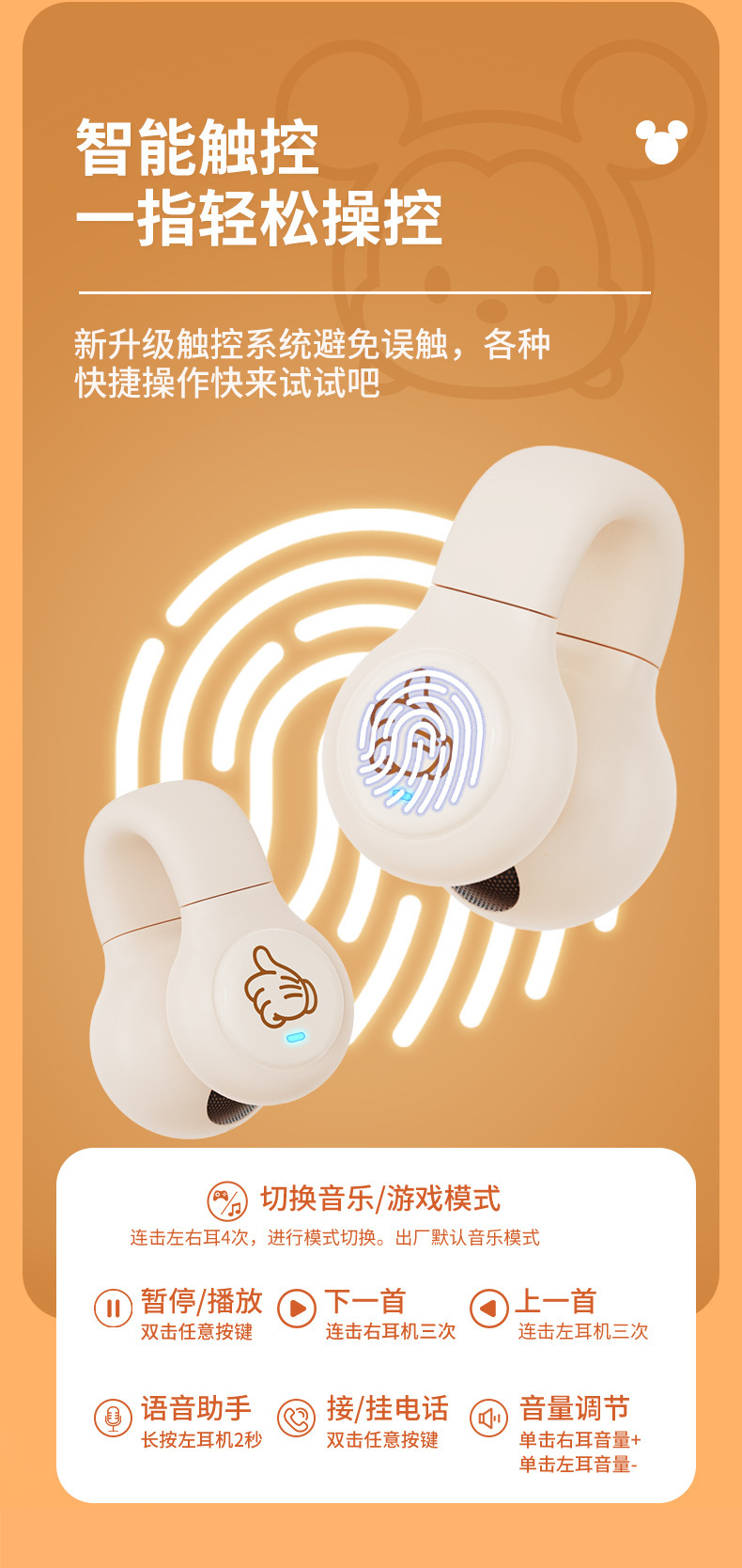국경 간 새로운 개인 모델 디즈니 클립 인 이어 블루투스 헤드셋 무선 공기 뼈 전도 헤드셋 디즈니/DN12