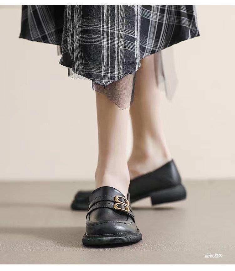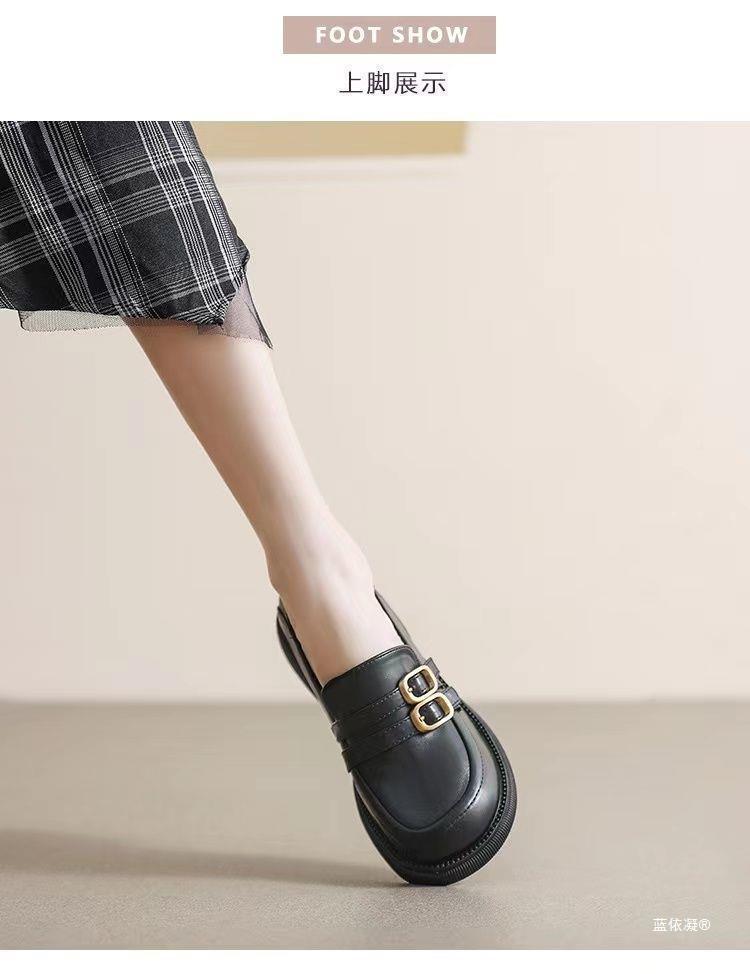 플러스 사이즈 여성 신발 35-43 넓은 지방 피트 41 검은 색 작은 가죽 신발 봄과 가을 플랫 신발 페달 로퍼 42스토어 가기