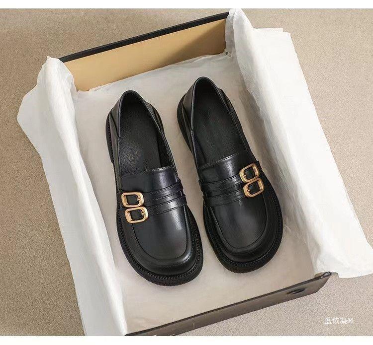 플러스 사이즈 여성 신발 35-43 넓은 지방 피트 41 검은 색 작은 가죽 신발 봄과 가을 플랫 신발 페달 로퍼 42