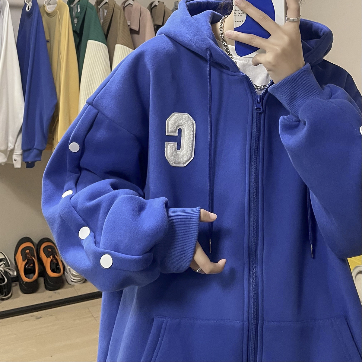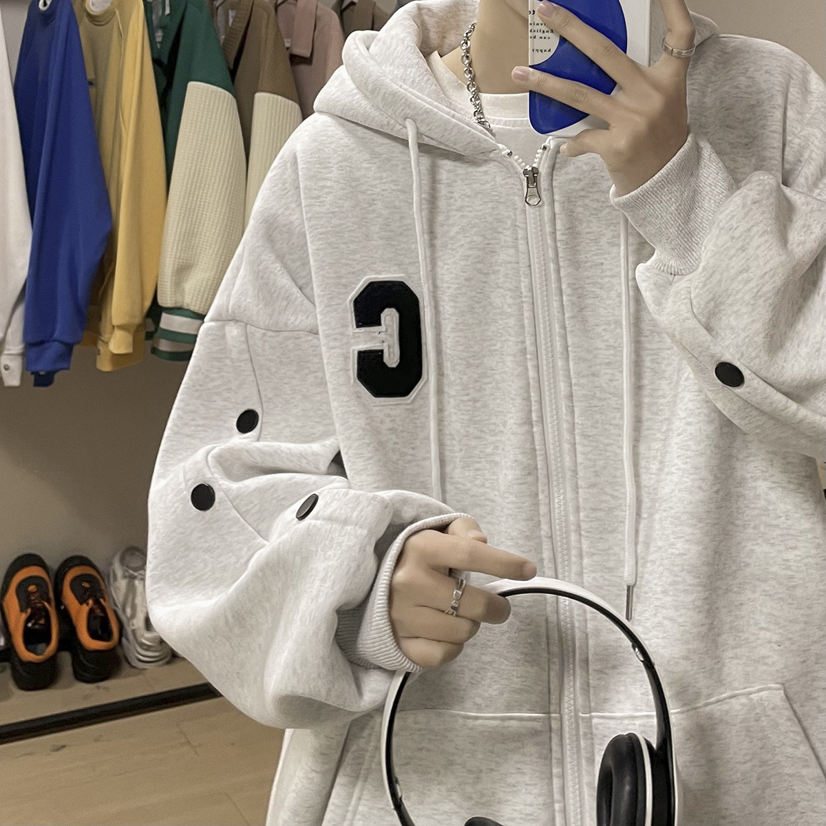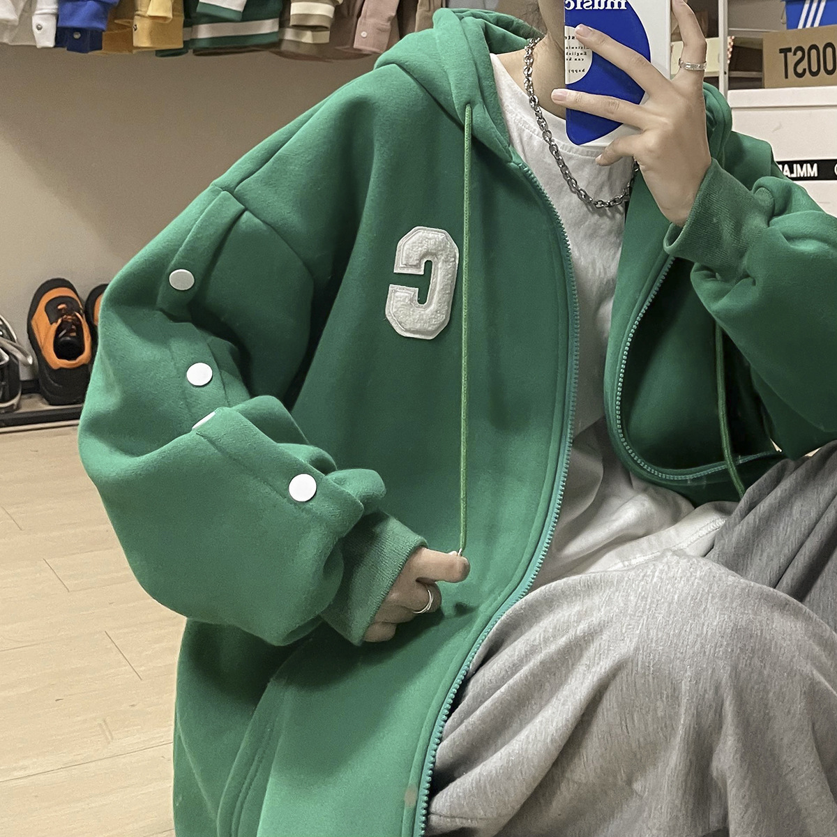 스웨터 남성 오버 사이즈 하이 스트리트 가을 패션 브랜드 루즈 후드 자켓 봄과 가을 Ins 틈새 카디건 옷스토어 가기