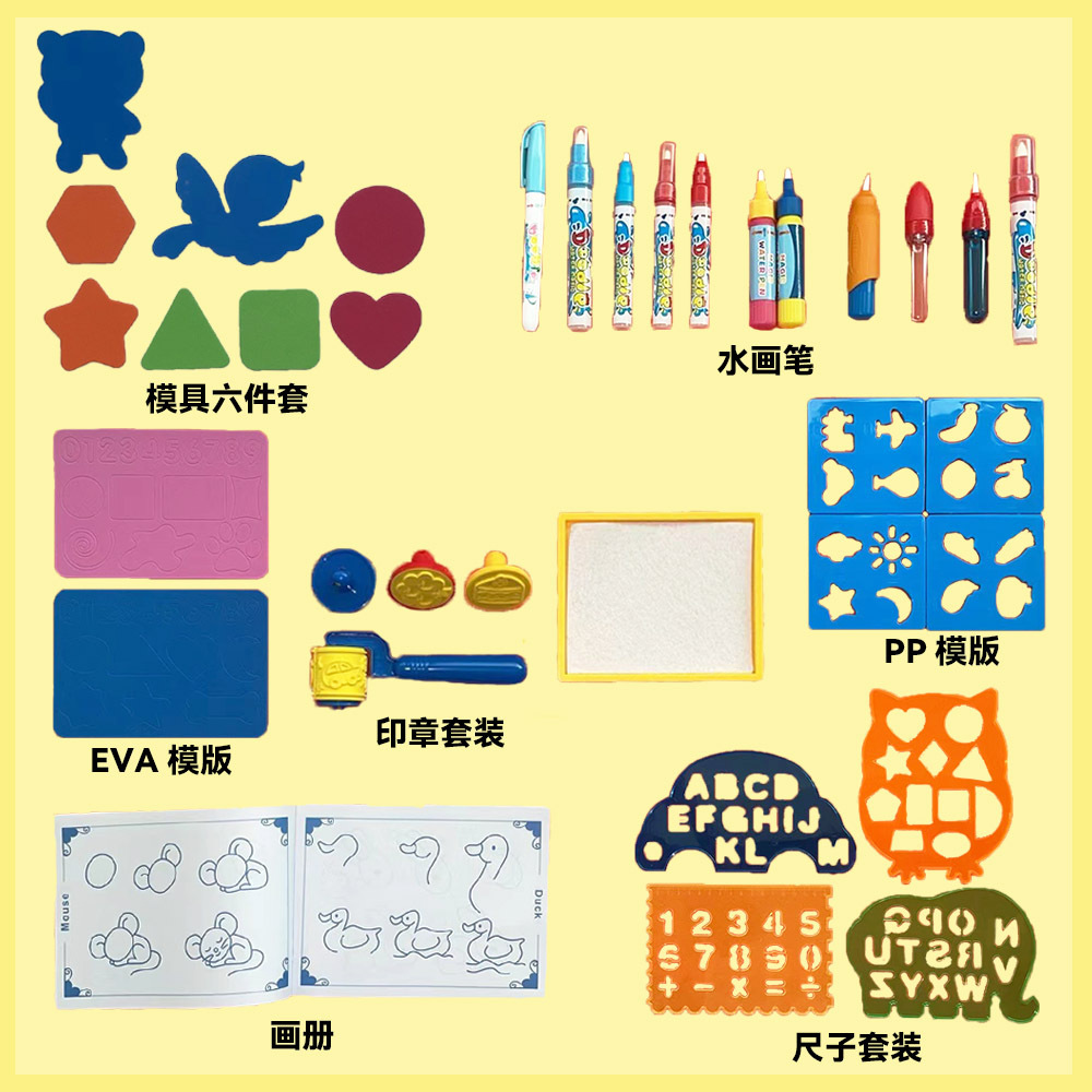 어린이 워터 캔버스 도구 액세서리 교육 장난감 워터 브러시 씰 통치자 세트 금형 사진 앨범