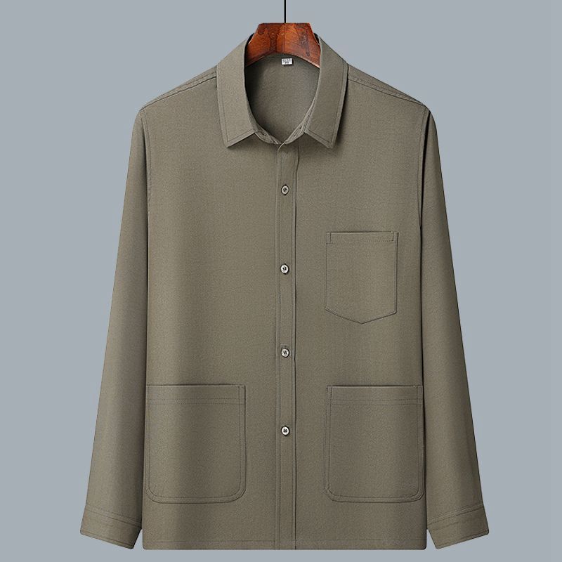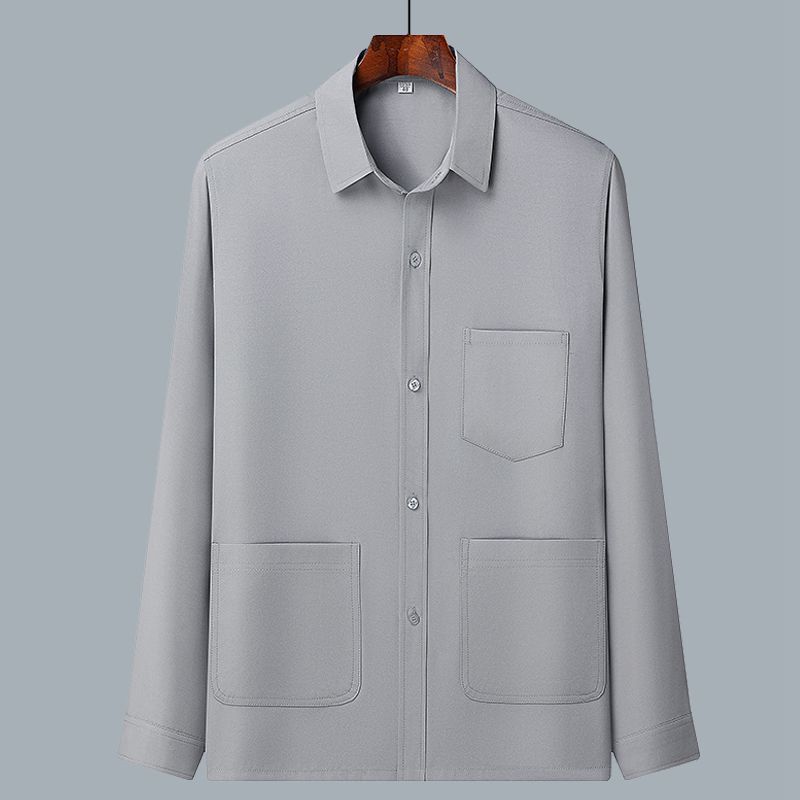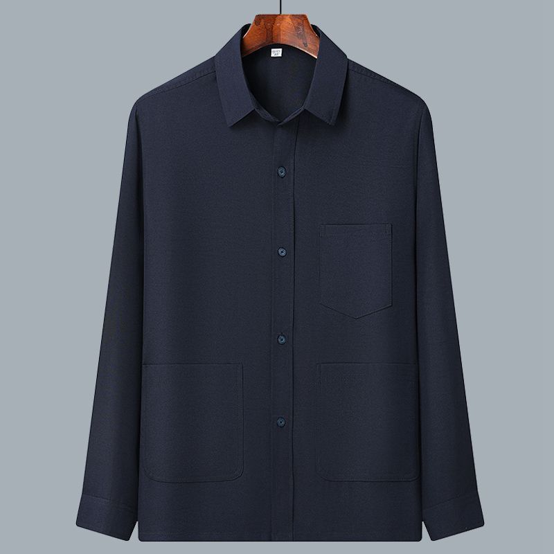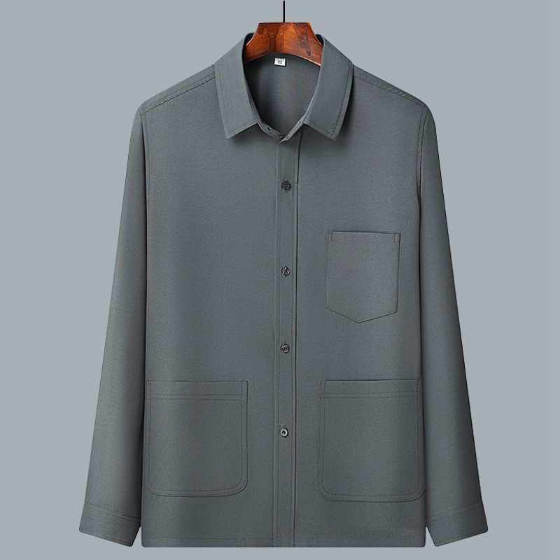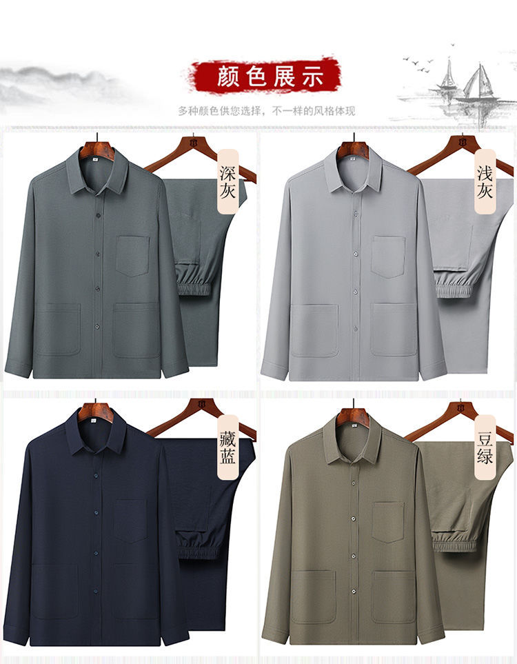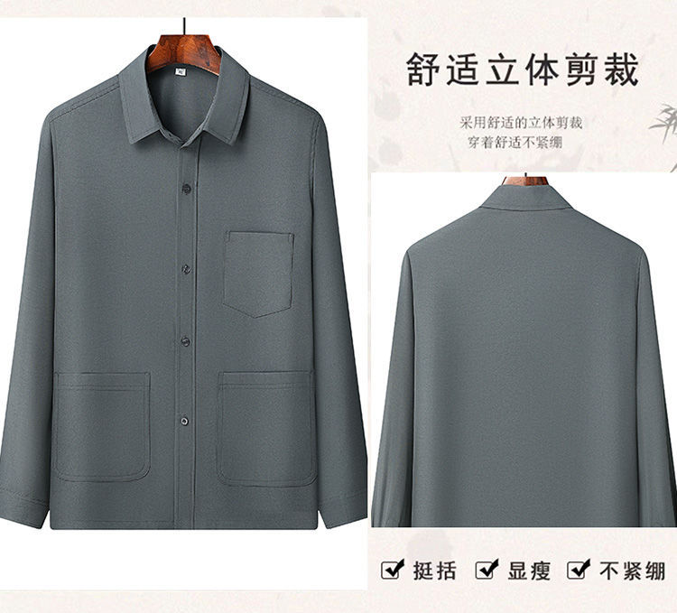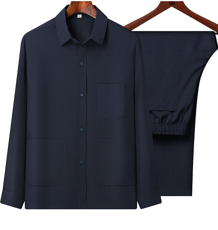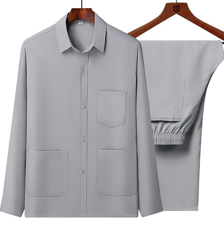 중년 및 노인을위한 아이스 실크 셔츠 남자 긴팔 세트 여름 플러스 사이즈 셔츠 아빠의 여름 옷 할아버지 노인 캐주얼 옷스토어 가기