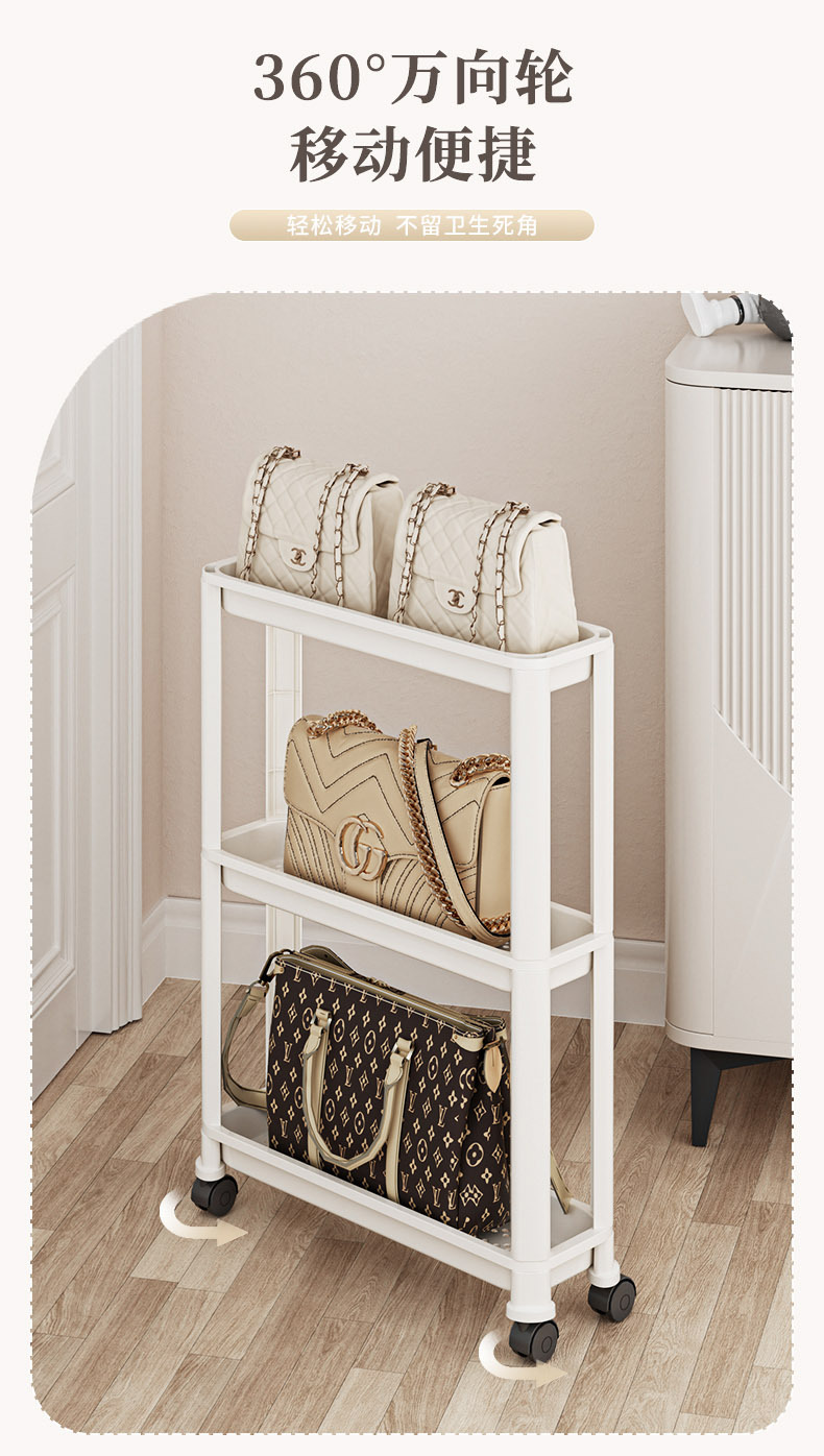 • 3단 좁은 모델 + 걸이바구니 + 범용 휠