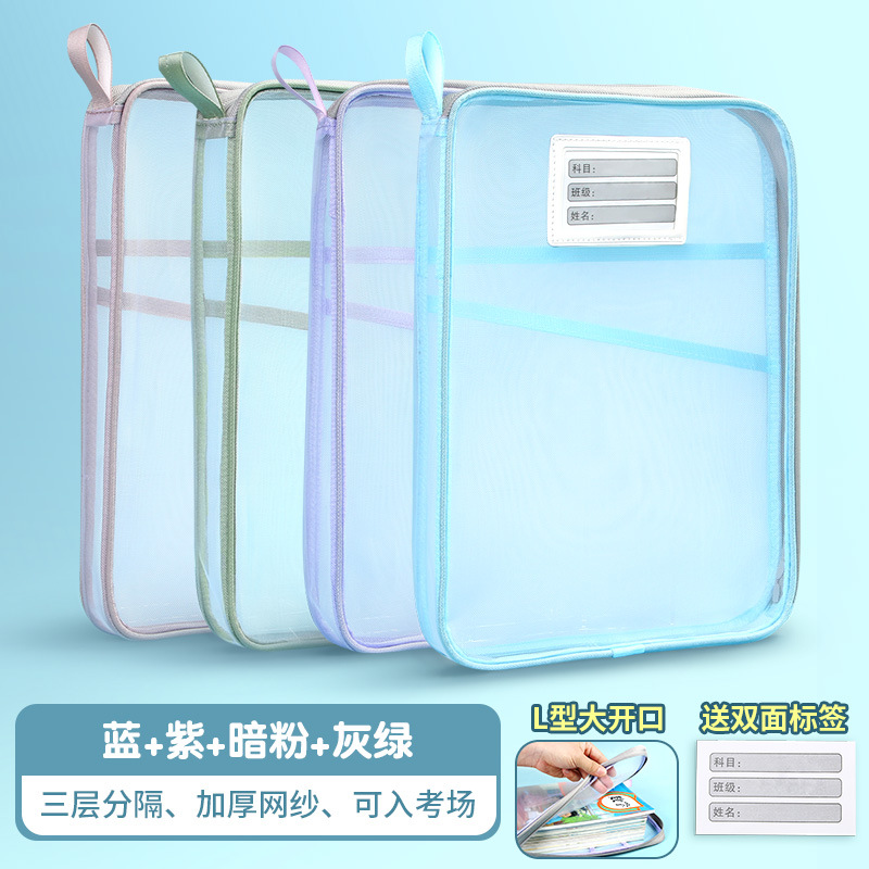 L 자형 주제 분류 가방 투명 문서 가방 지퍼 메쉬 대형 오프닝 학생 휴대용 특별 도서 가방스토어 가기