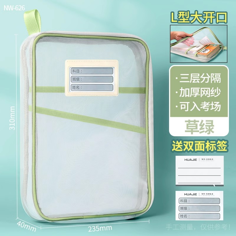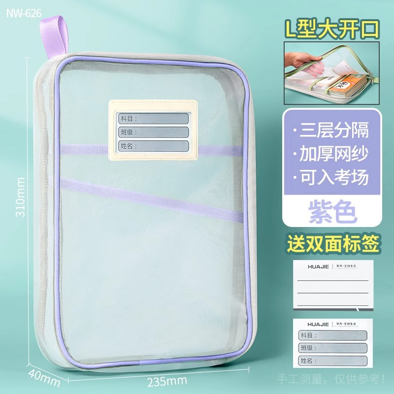 L 자형 주제 분류 가방 투명 문서 가방 지퍼 메쉬 대형 오프닝 학생 휴대용 특별 도서 가방