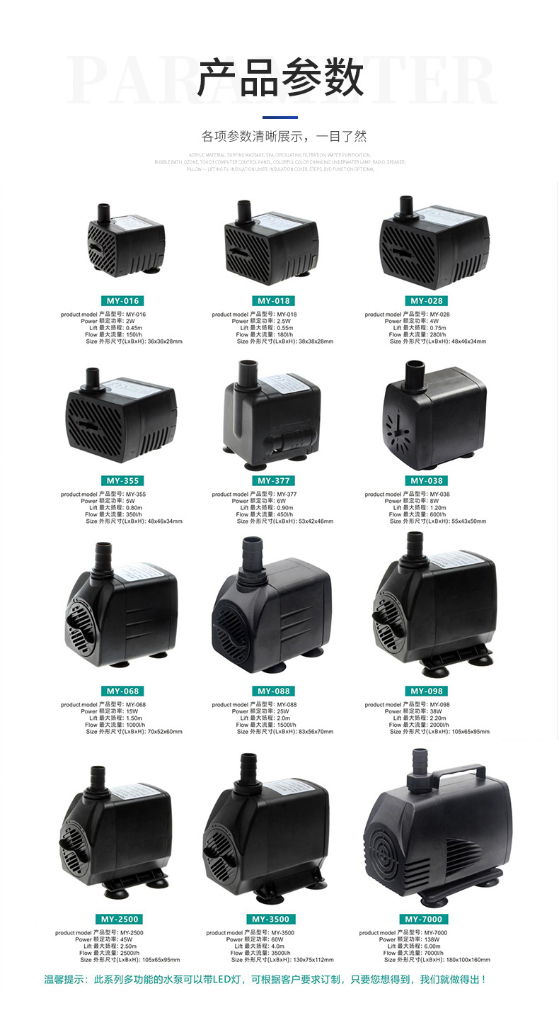 • 측면 흡입 펌프 2.5와트(라이트 포함)