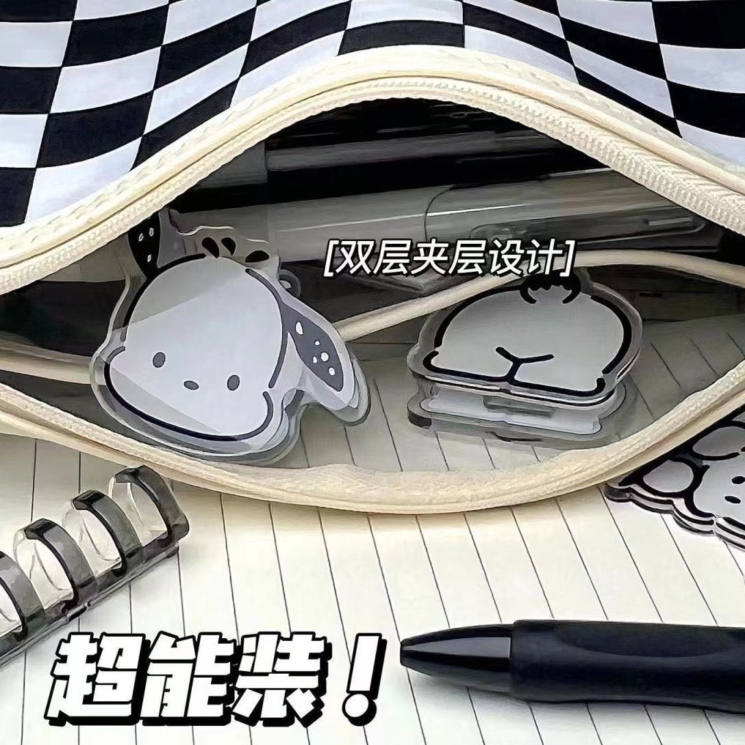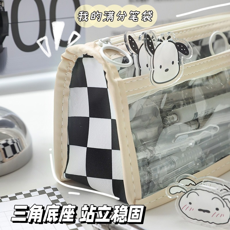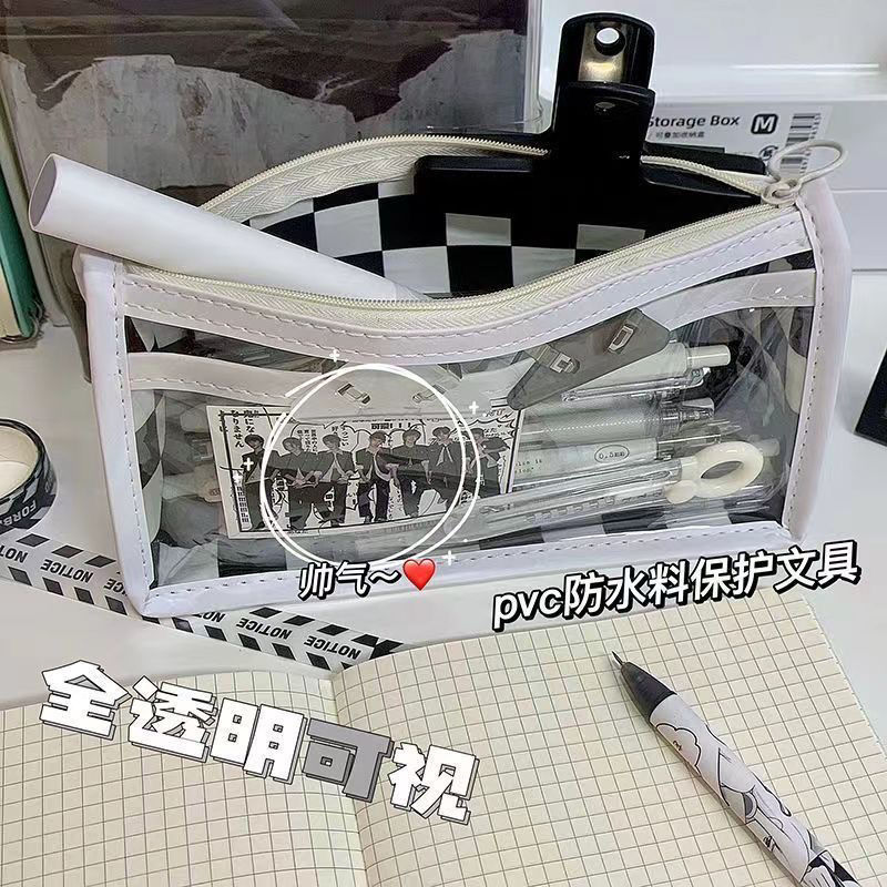 투명 바둑판 연필 가방 문구 가방 높은 가치 대용량 간단한 학생 문구 가방 일본 초등학교 학생 연필 가방스토어 가기