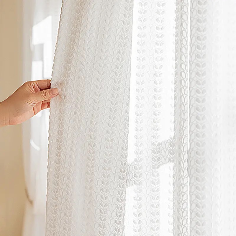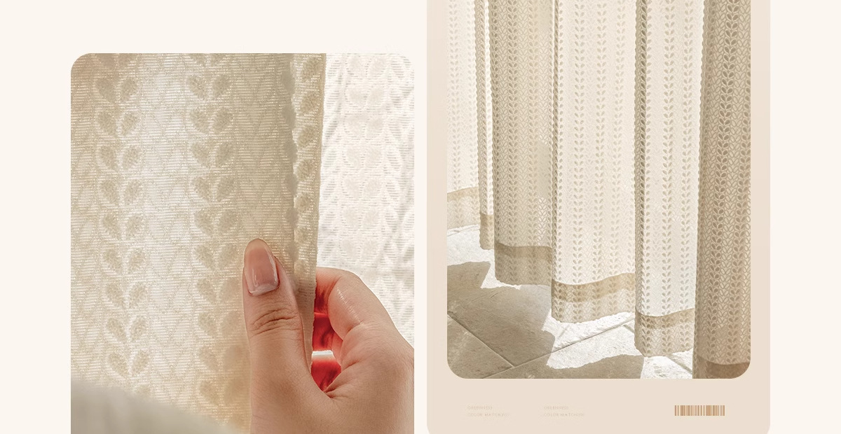커튼 커튼 제조 업체 직물 도매 국경 대외 무역 창 화면 프랑스 우유 차 컬러 구호 꽃 원사 흰색 원사