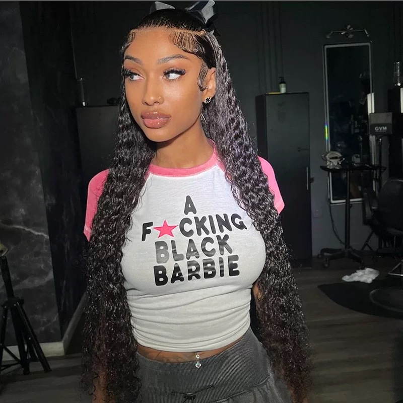 BLACK BARBIE 여성의 여름 새로운 대비 컬러 바느질 편지 인쇄 라운드 넥 짧은 소매 배꼽 짧은 여성용 티셔츠스토어 가기