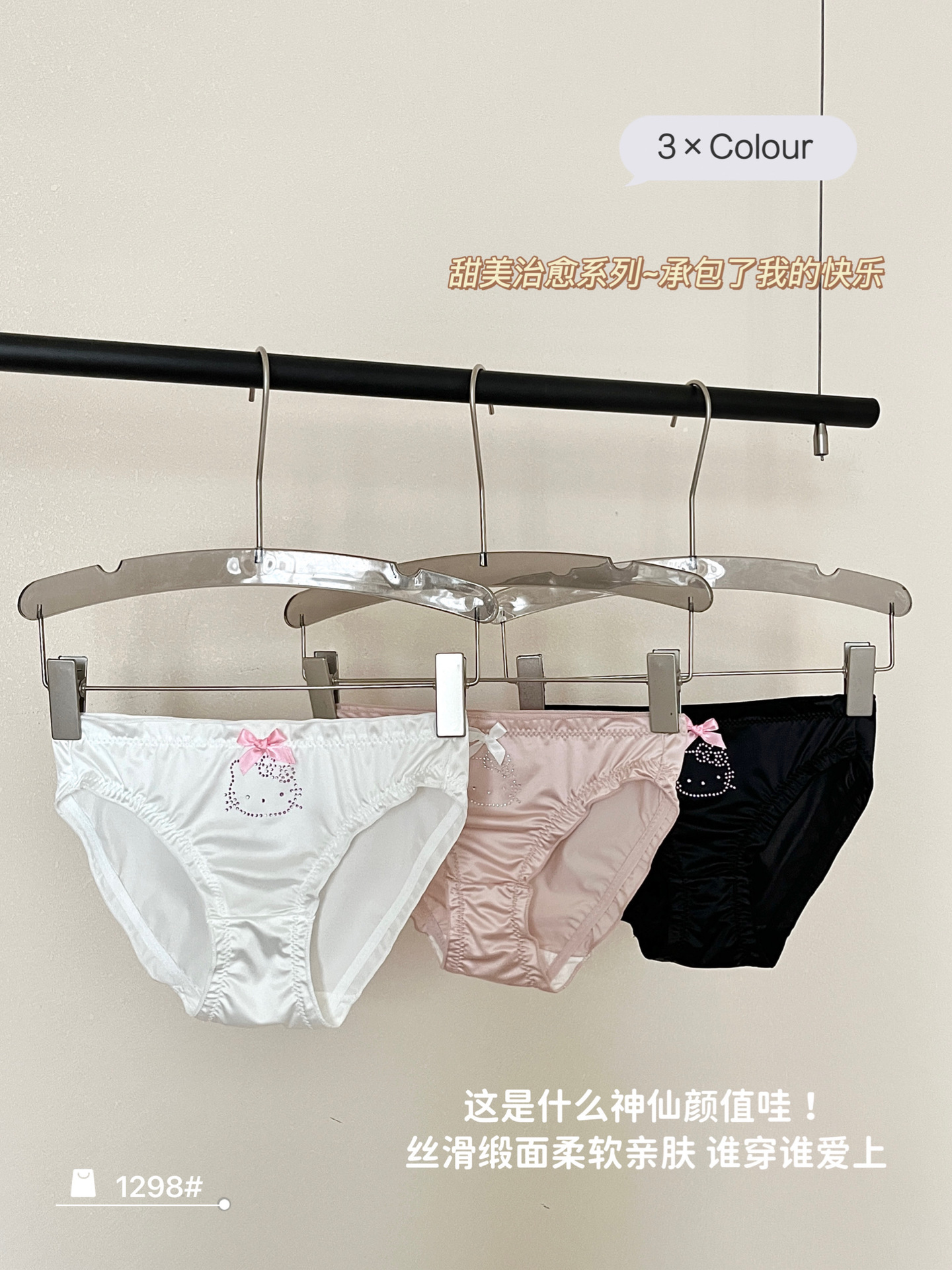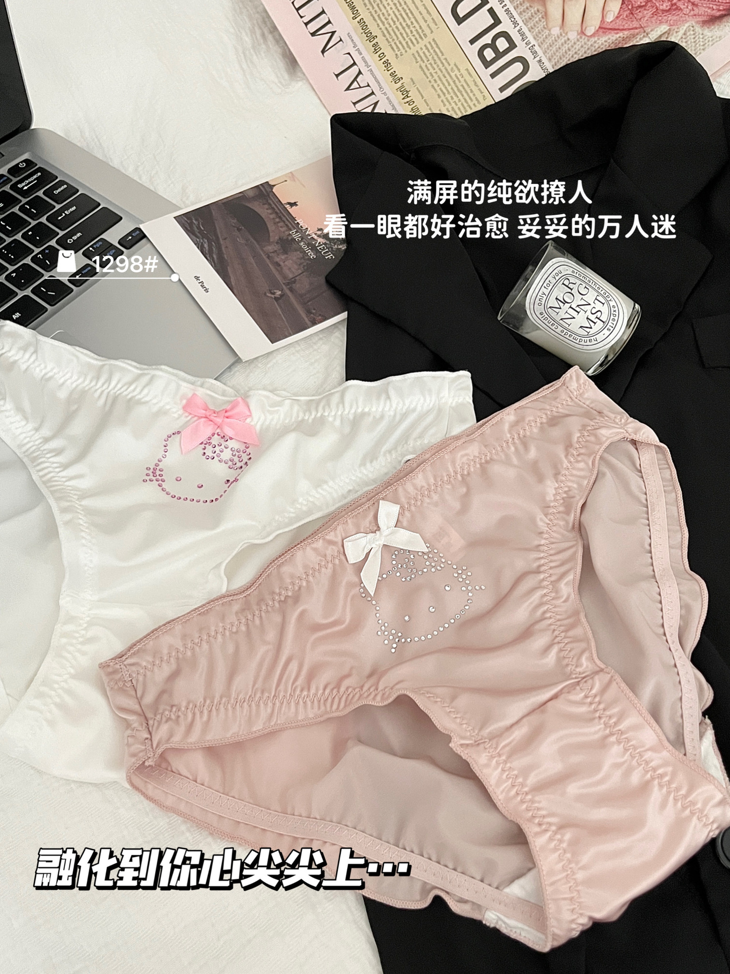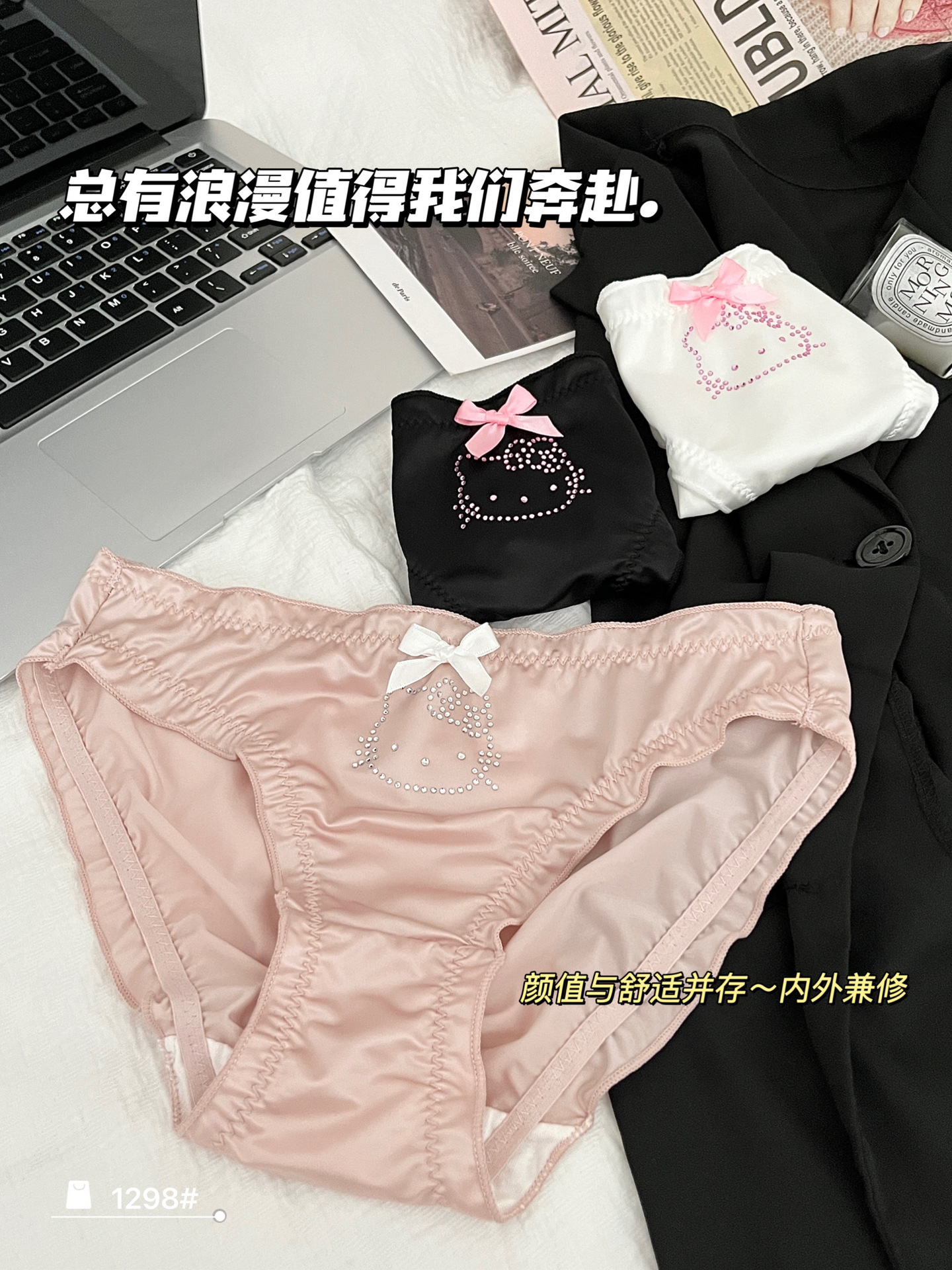원래 새로운 소녀 KT 고양이 플래시 다이아몬드 피부 친화적 인 새틴 귀여운 속옷 여성의 활 얇은 가방 힙합 브리프
