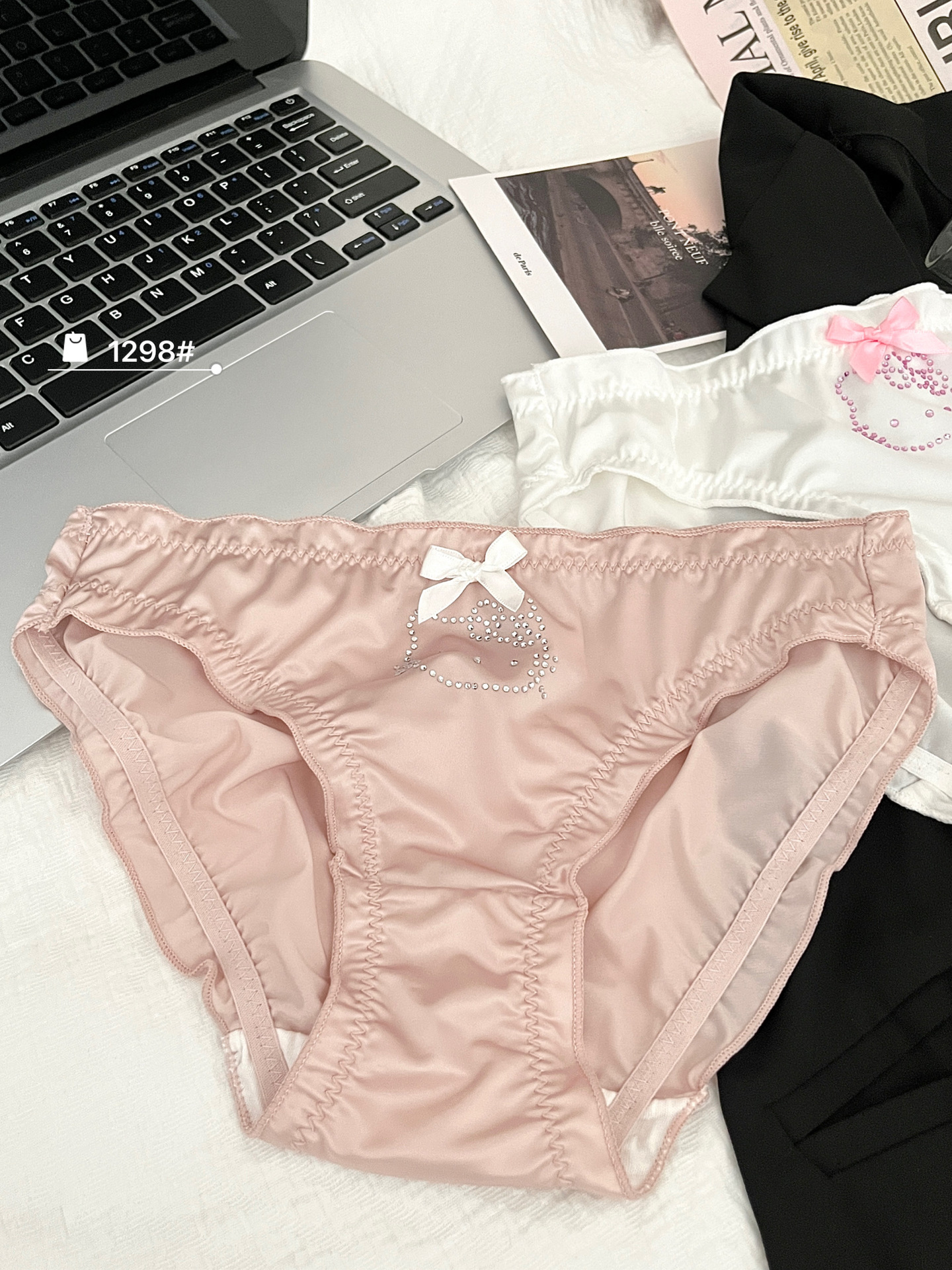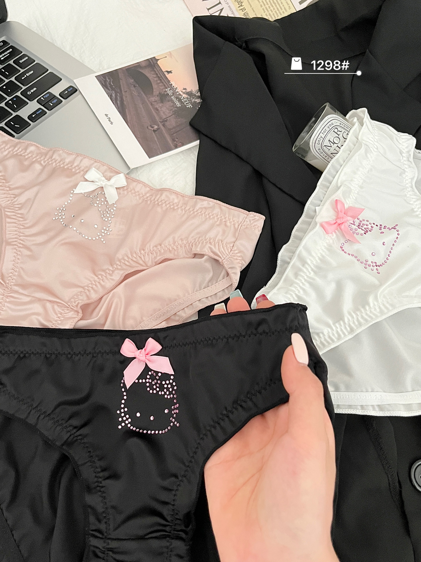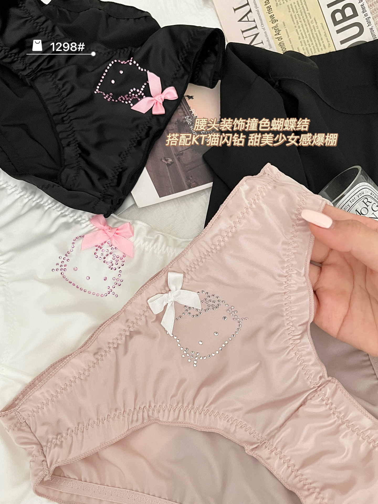 원래 새로운 소녀 KT 고양이 플래시 다이아몬드 피부 친화적 인 새틴 귀여운 속옷 여성의 활 얇은 가방 힙합 브리프스토어 가기
