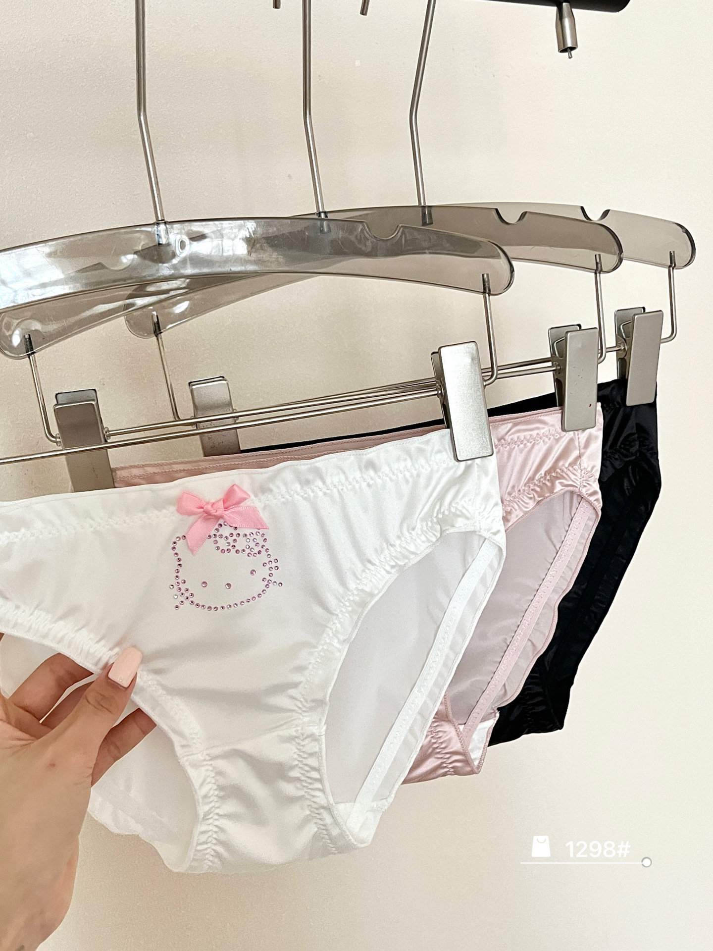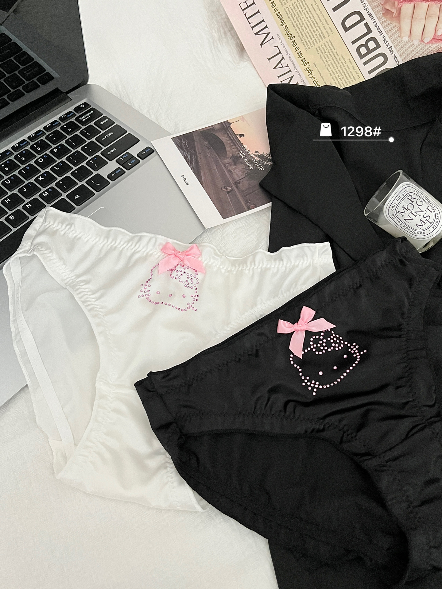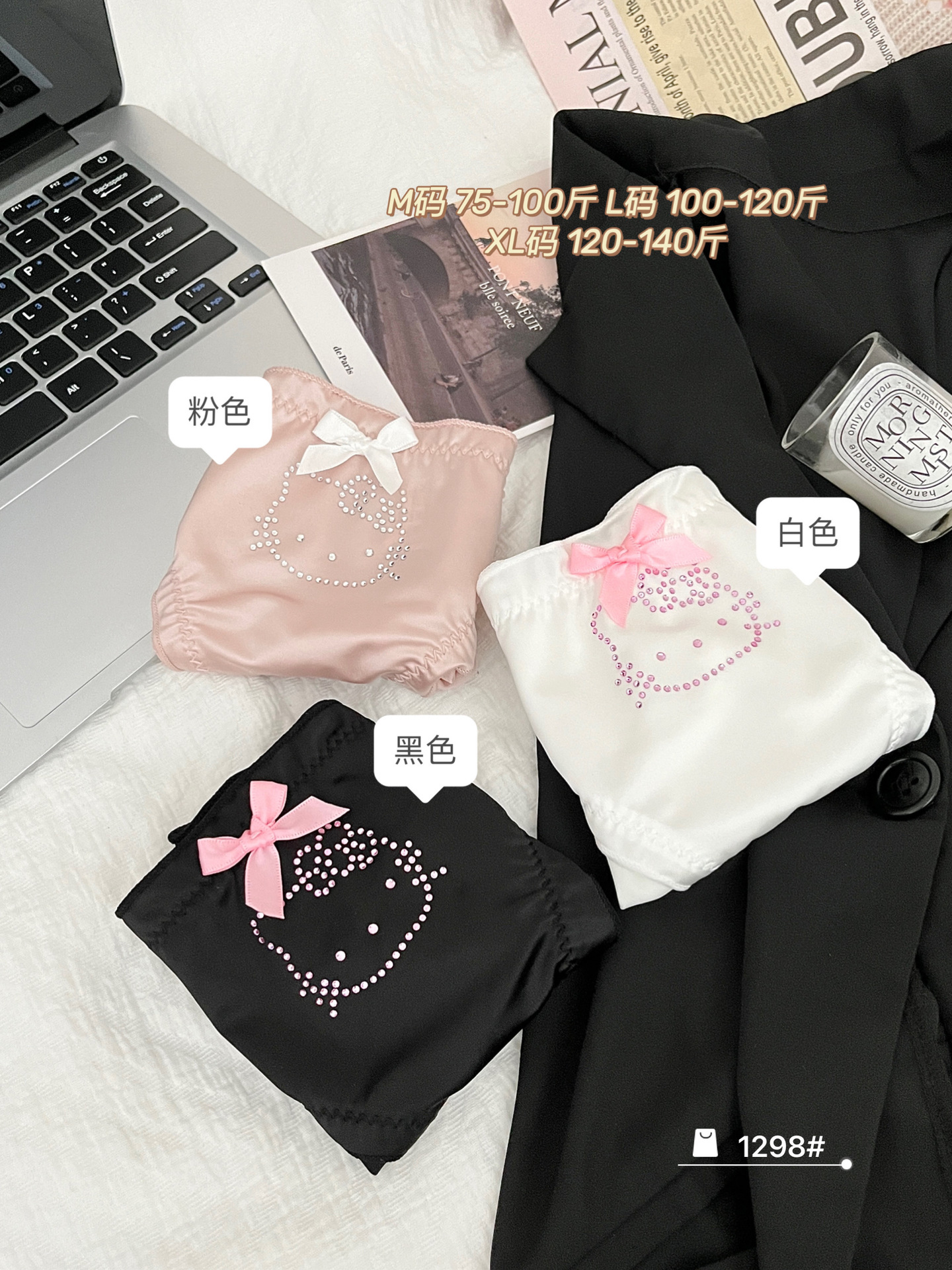 원래 새로운 소녀 KT 고양이 플래시 다이아몬드 피부 친화적 인 새틴 귀여운 속옷 여성의 활 얇은 가방 힙합 브리프스토어 가기