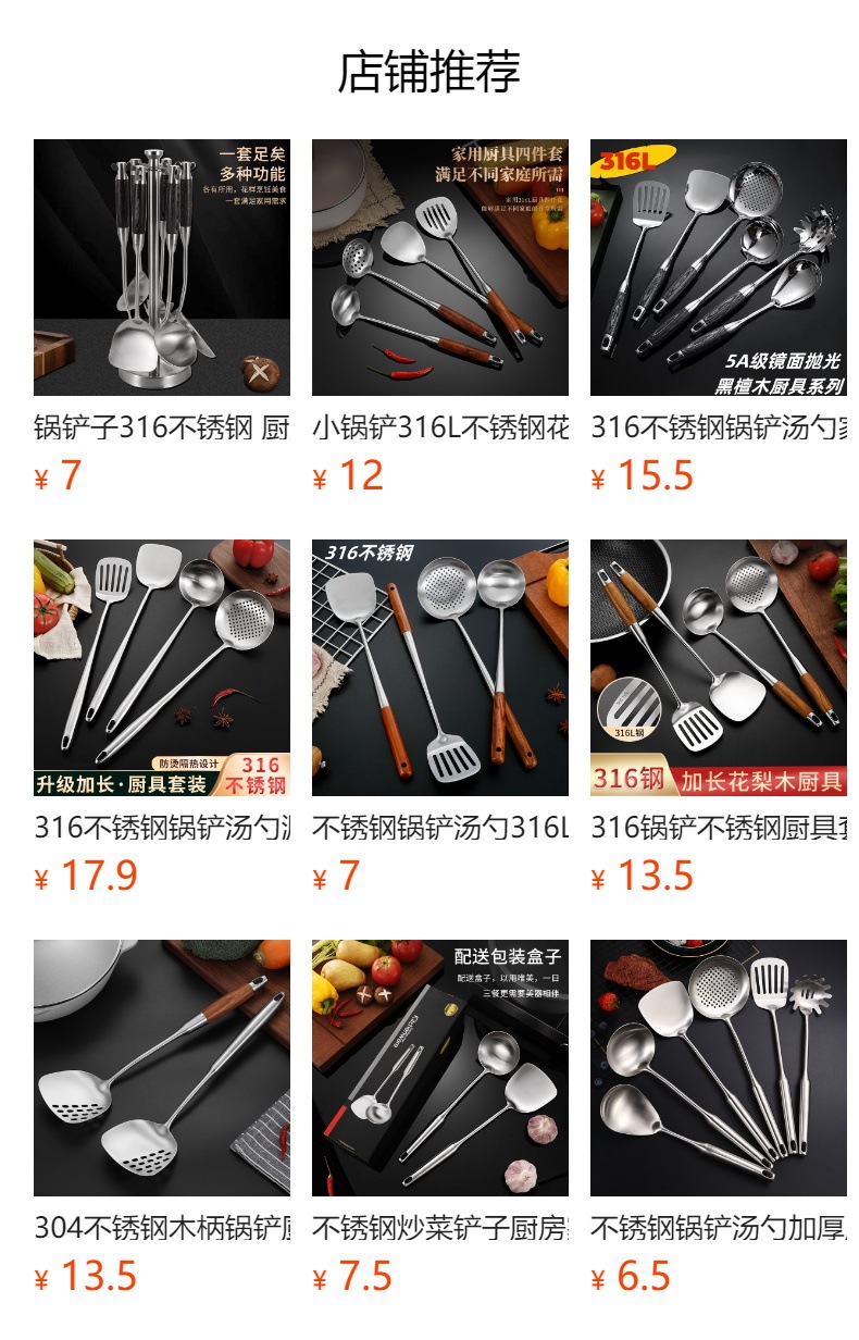 316 주걱 스테인리스 스틸 주방 주방 요리 도구 세트 삽 숟가락 수프 숟가락 소쿠리 볶음 삽스토어 가기