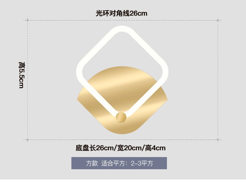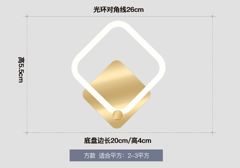 • 골드 D 스타일 사각형 벽 램프 26*5.5CM 14W