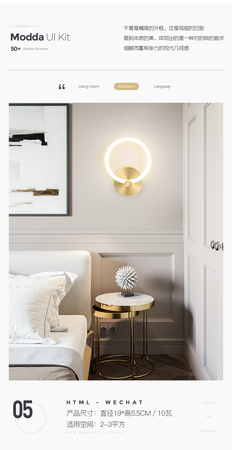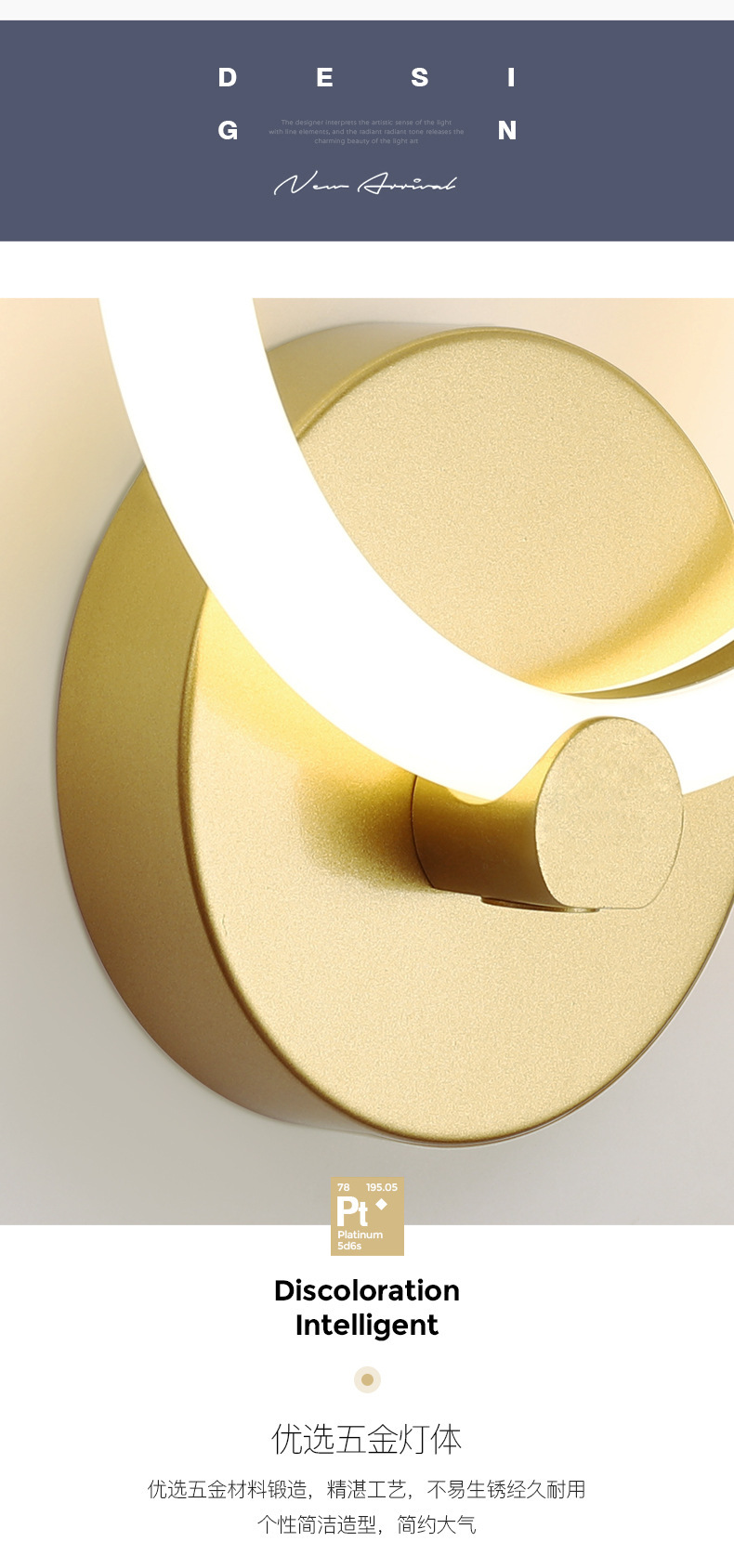 가벼운 고급 벽 램프 침실 현대 간단한 라운드 램프 창조적 인 독특한 거실 통로 배경 벽 마스터 침대 옆 램프