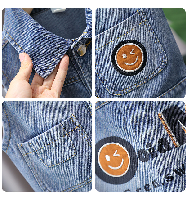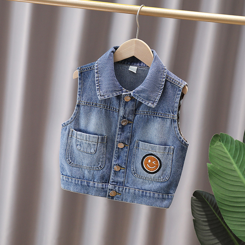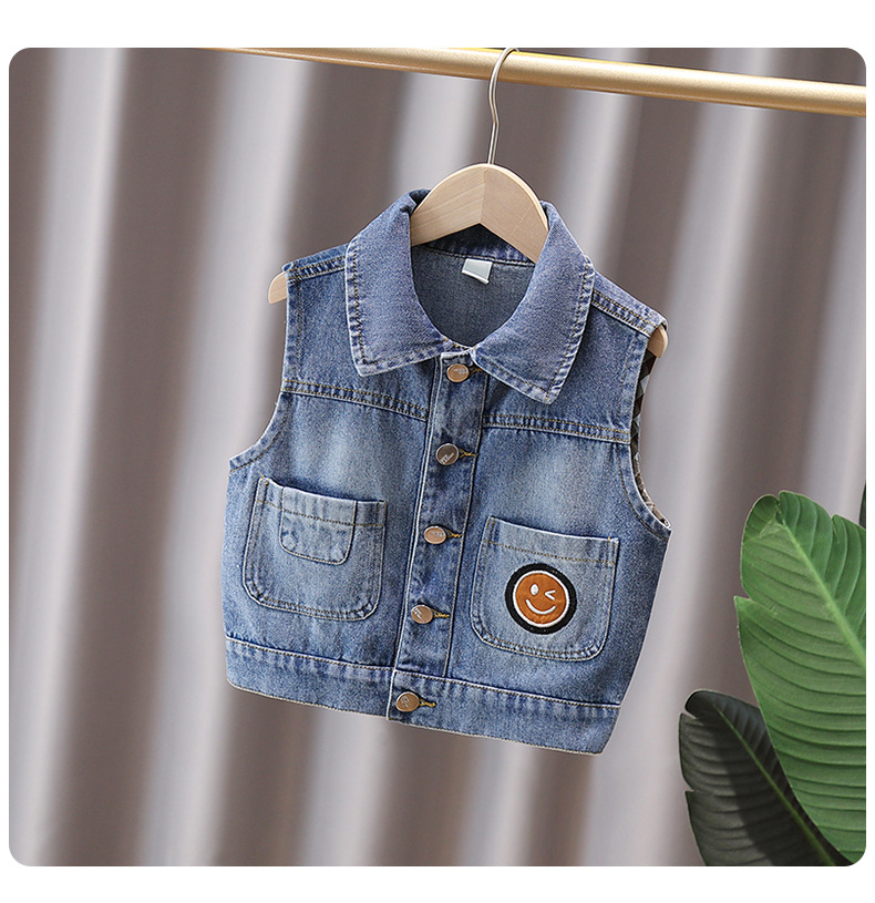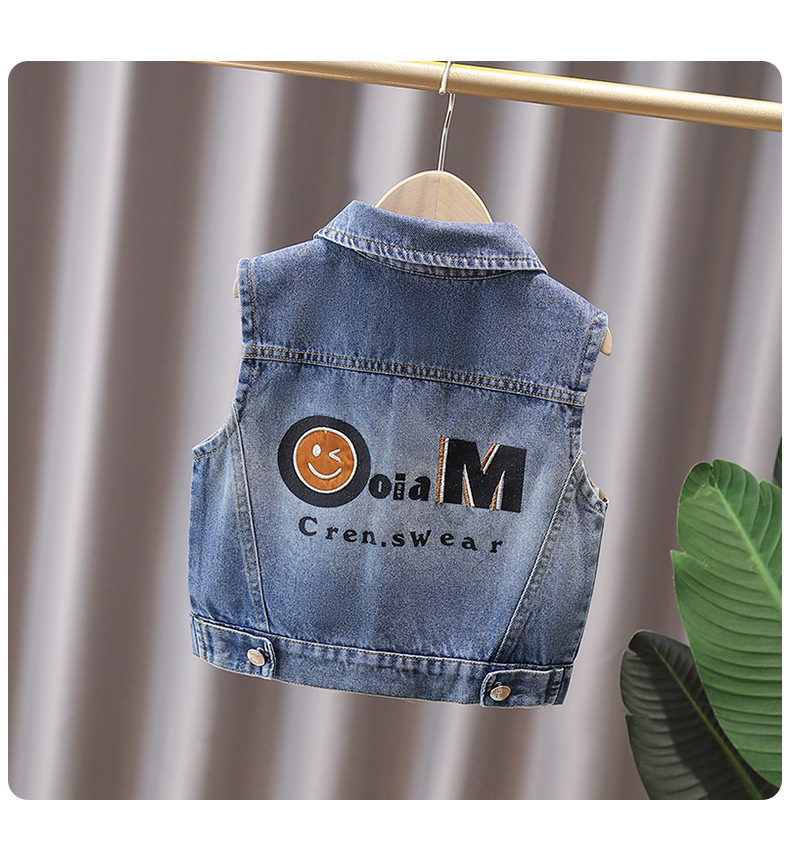 소년 조끼 봄과 가을 새로운 만화 어린이 데님 조끼 남자 보물 서양식 외부 착용 사이버 인기 올 매치 조끼스토어 가기