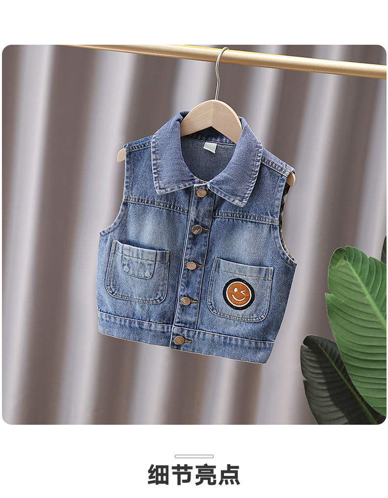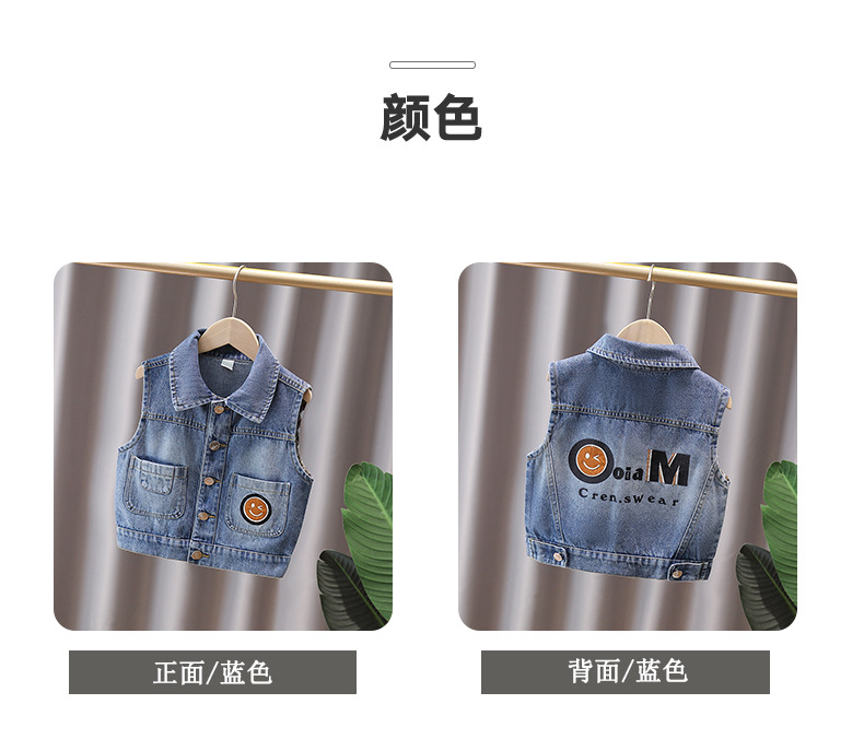 소년 조끼 봄과 가을 새로운 만화 어린이 데님 조끼 남자 보물 서양식 외부 착용 사이버 인기 올 매치 조끼