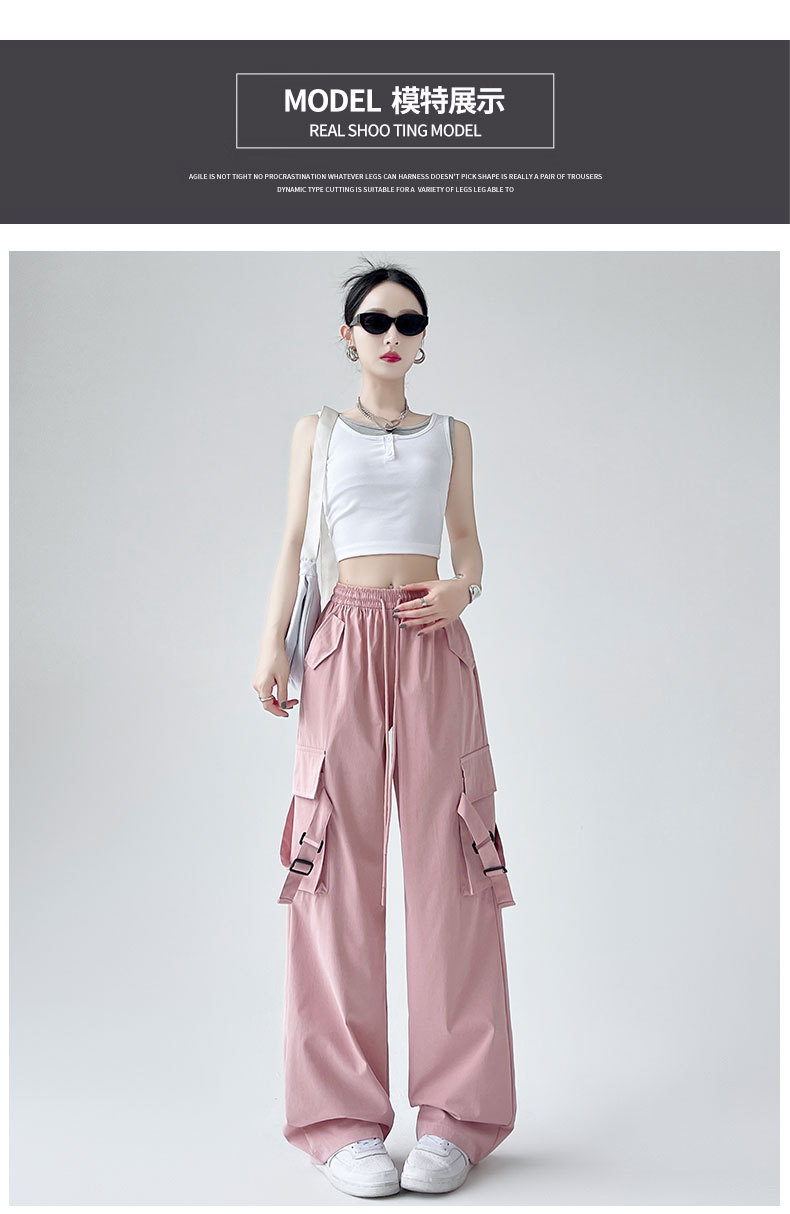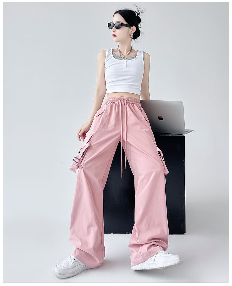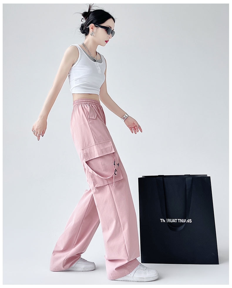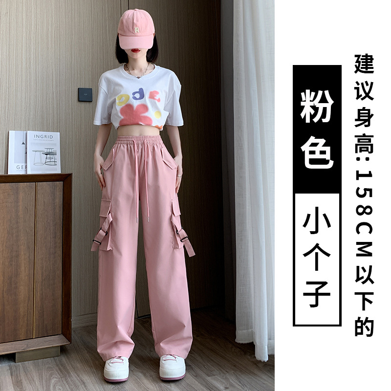 핑크 바지 여성 봄과 가을 느슨한 발가락 높은 허리 여름 캐주얼 넓은 다리 바지 등산 충전 미국 스포츠 바지스토어 가기