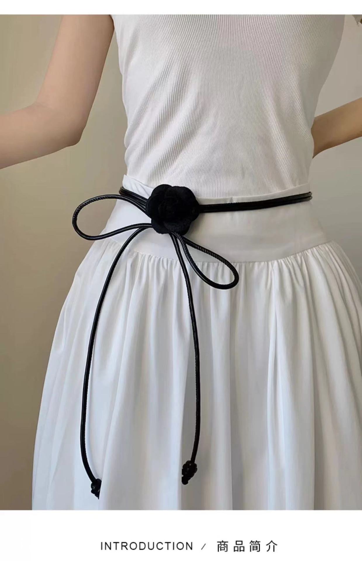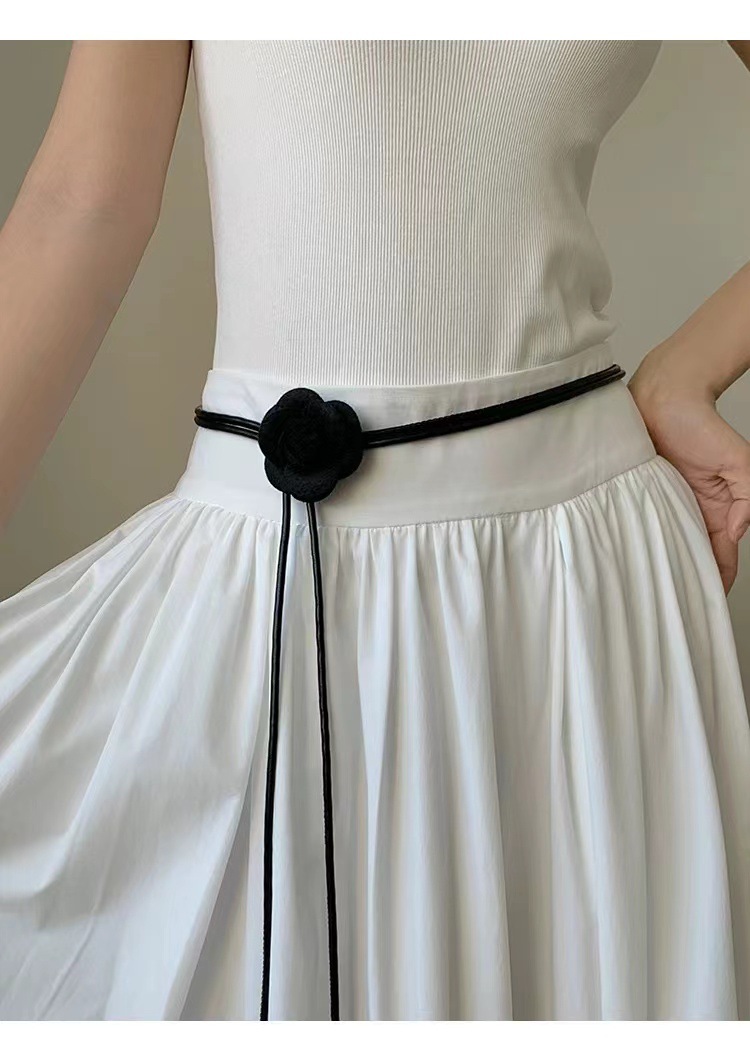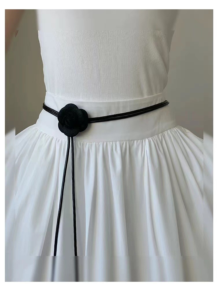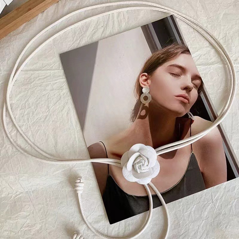 아메리칸 스타일 레트로 로즈 플라워 벨트 여성의 간단한 원피스 장식 허리 로프 Instagram 스타일 트렌디 한 올매치 얇은 벨트