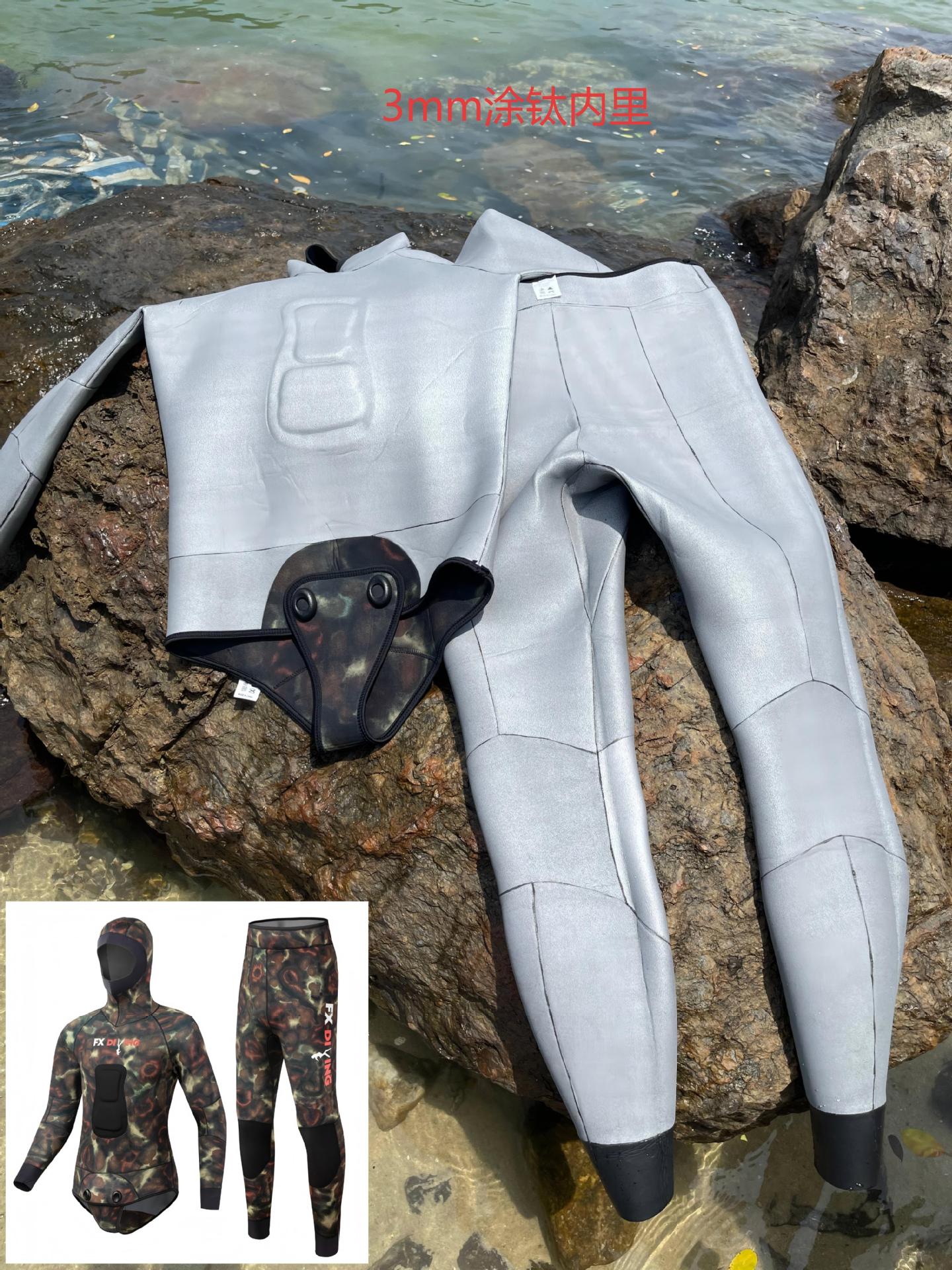 3mm 광택 고무 슬립코팅 티타늄 위장 낚시 및 사냥복 분리형 다이빙복 해파리 방지복 프리다이빙 전용