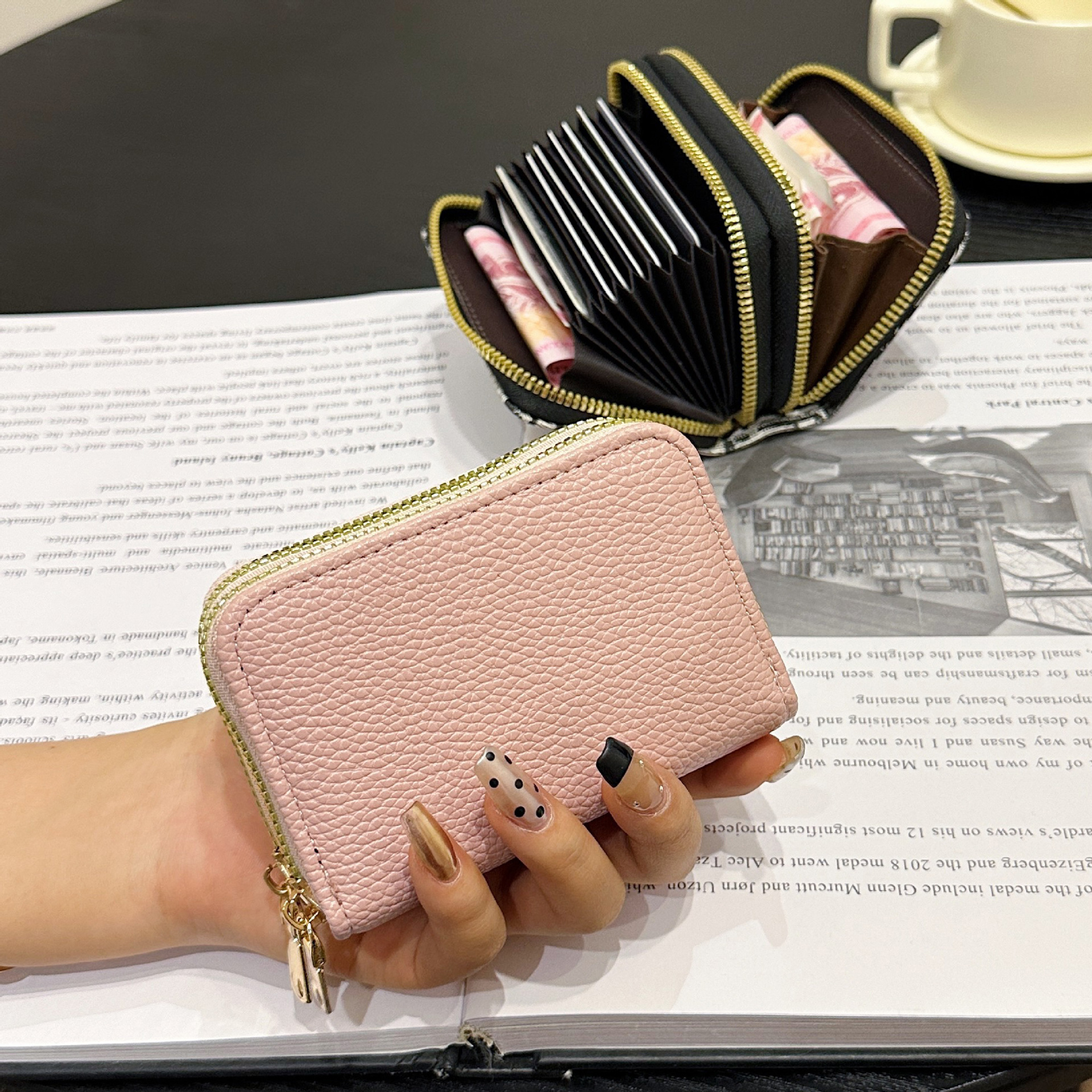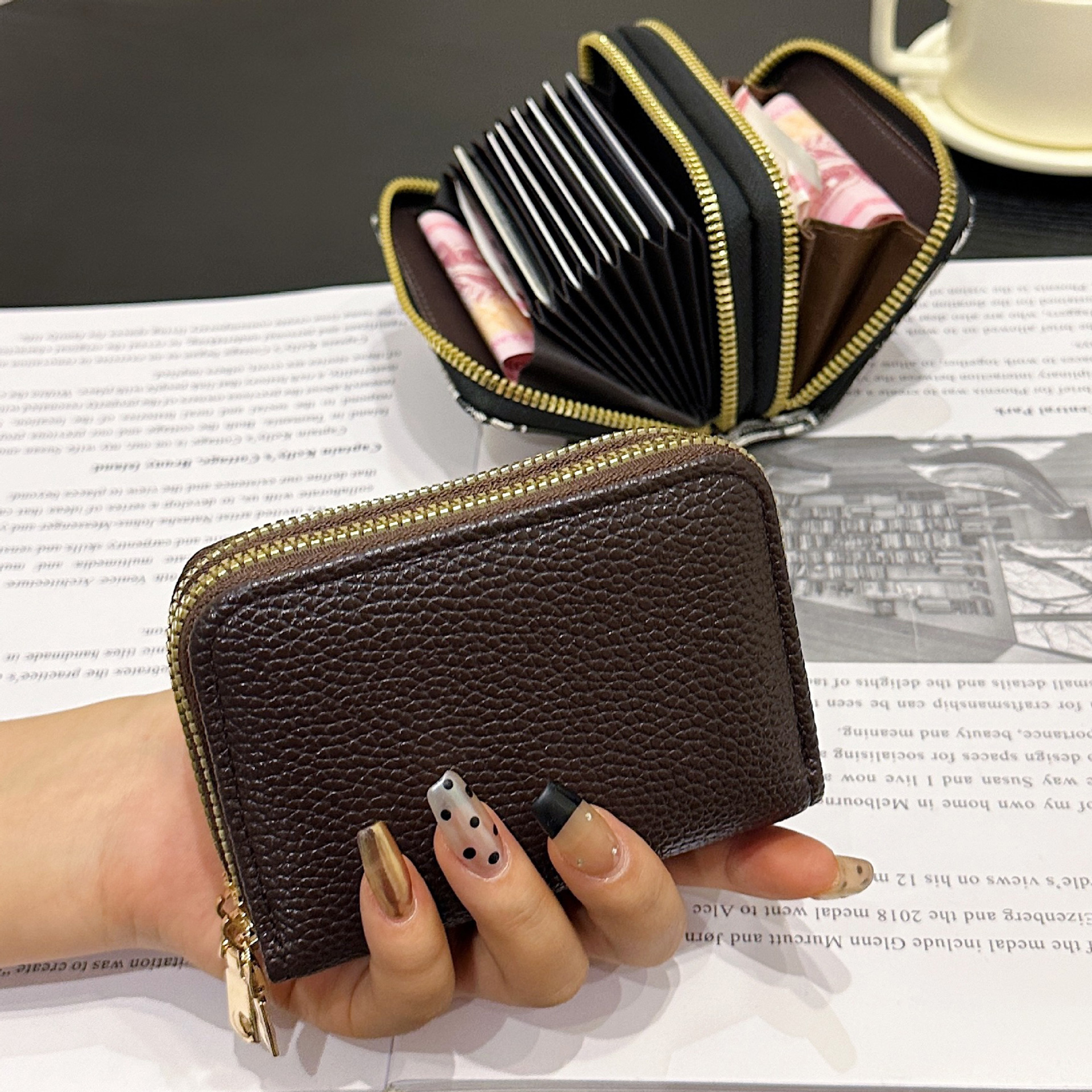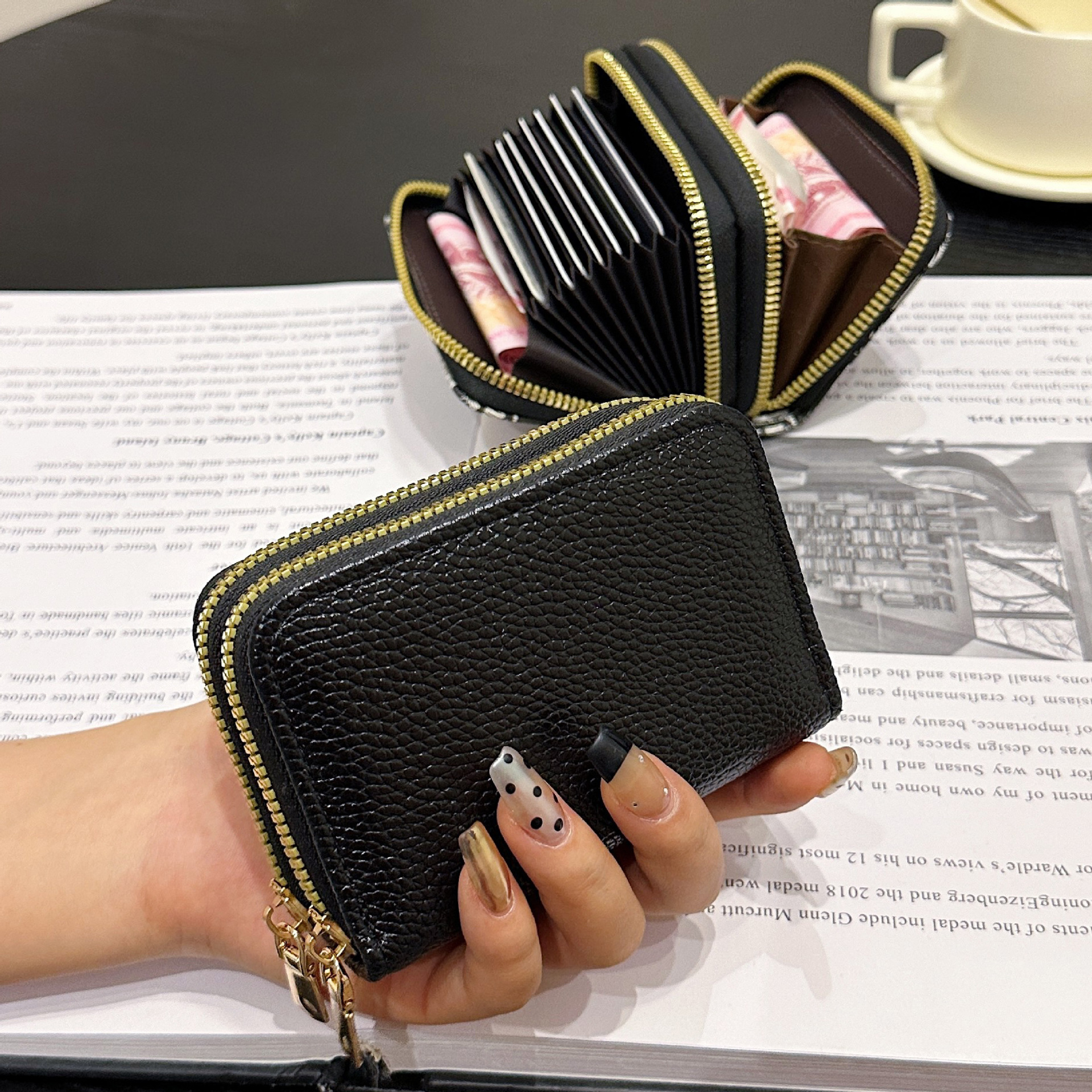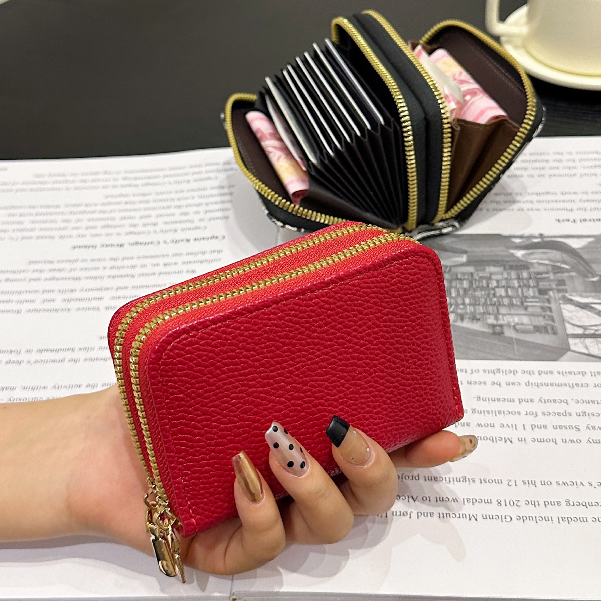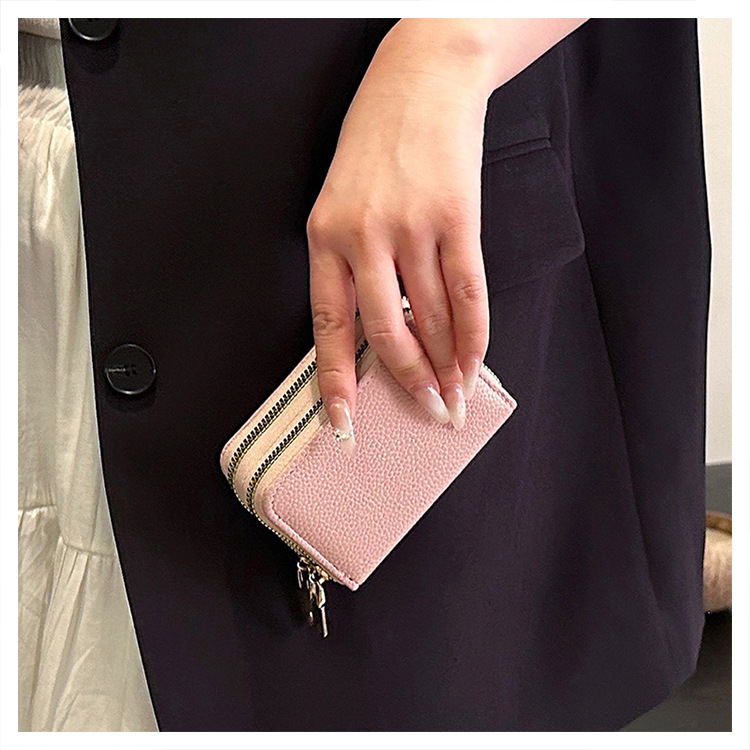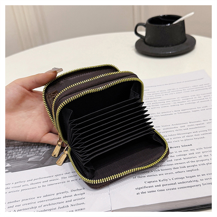 더블 레이어 지퍼 카드 홀더 여성의 작은 안티-degaussing 은행 카드 홀더 멀티 카드 카드 홀더 운전 카드 동전 지갑