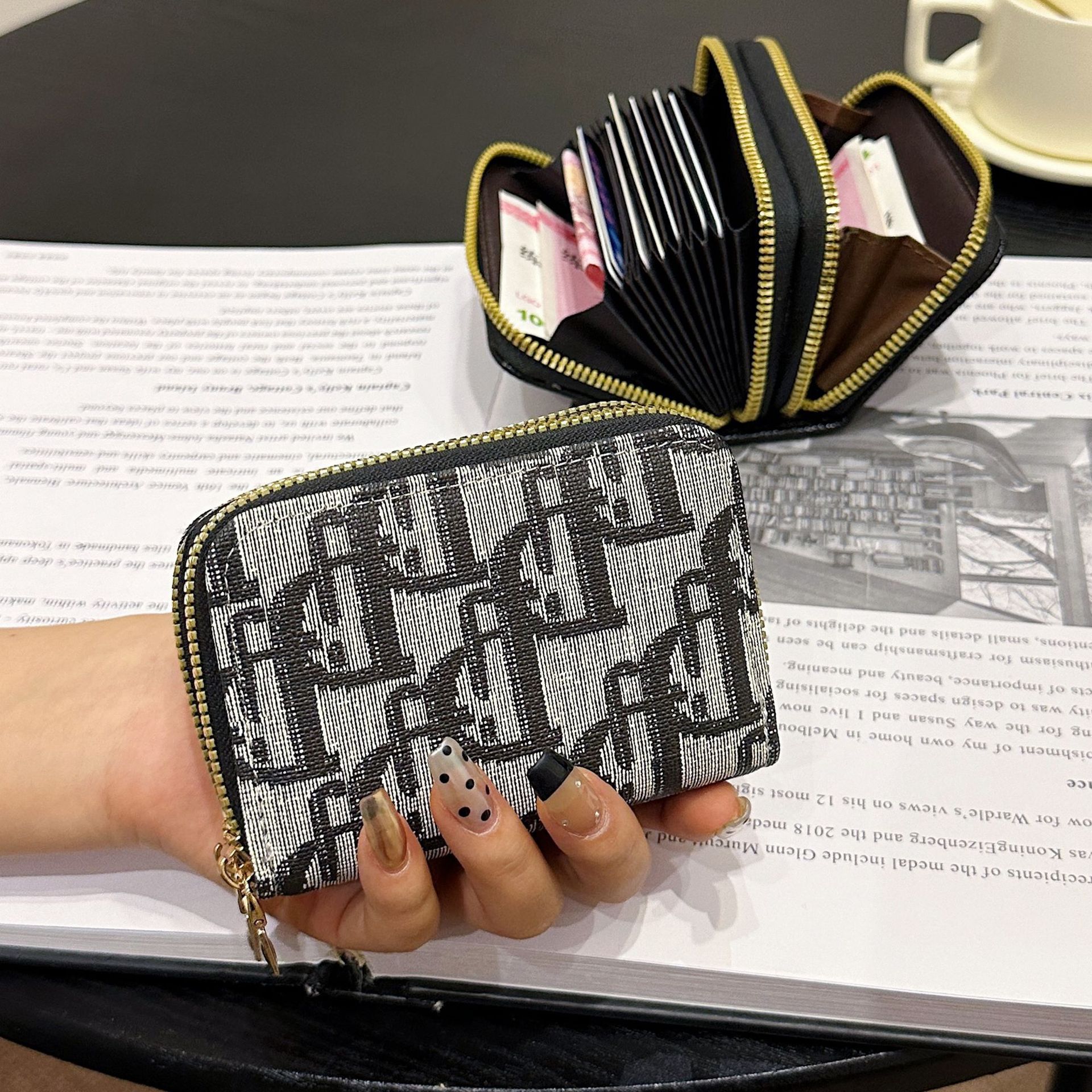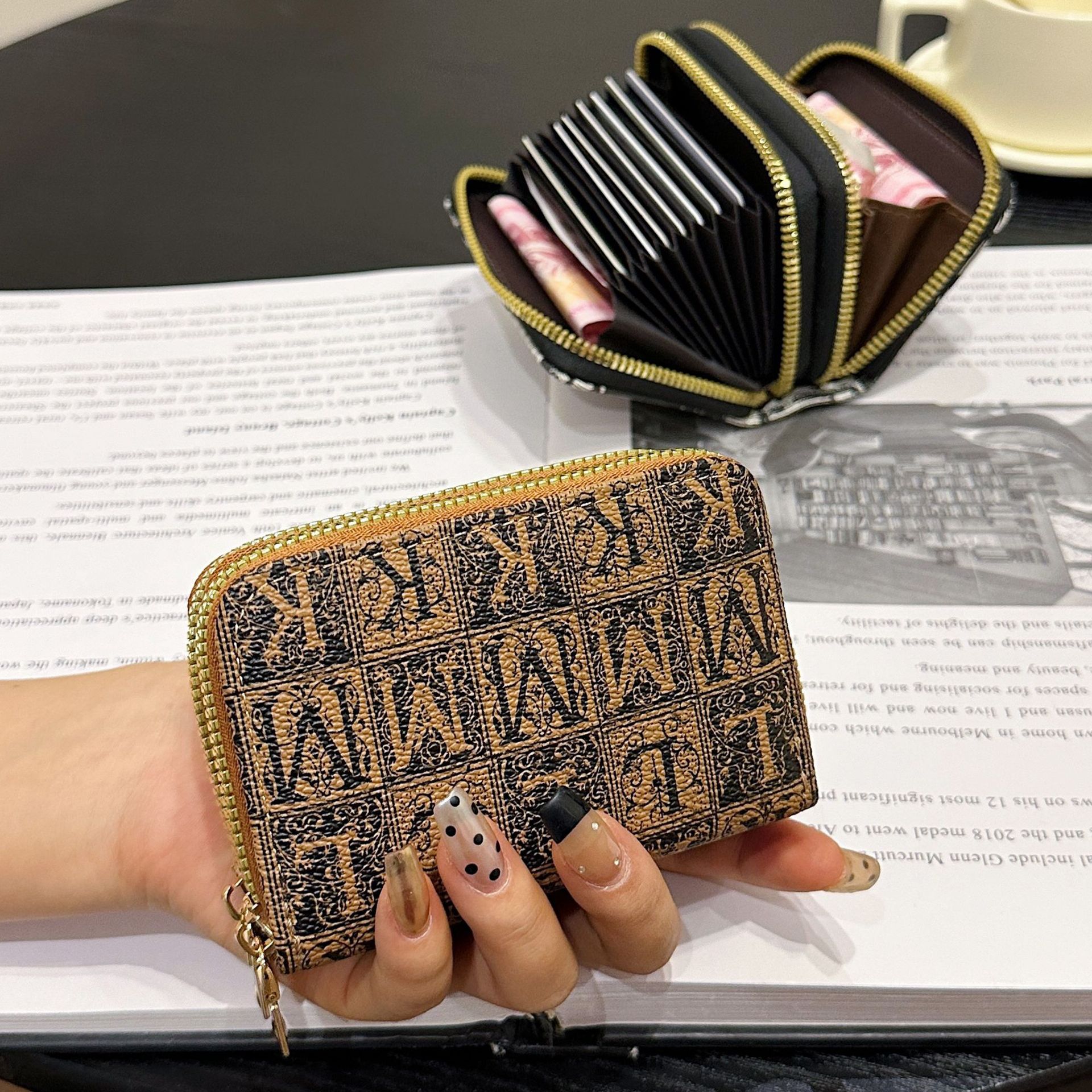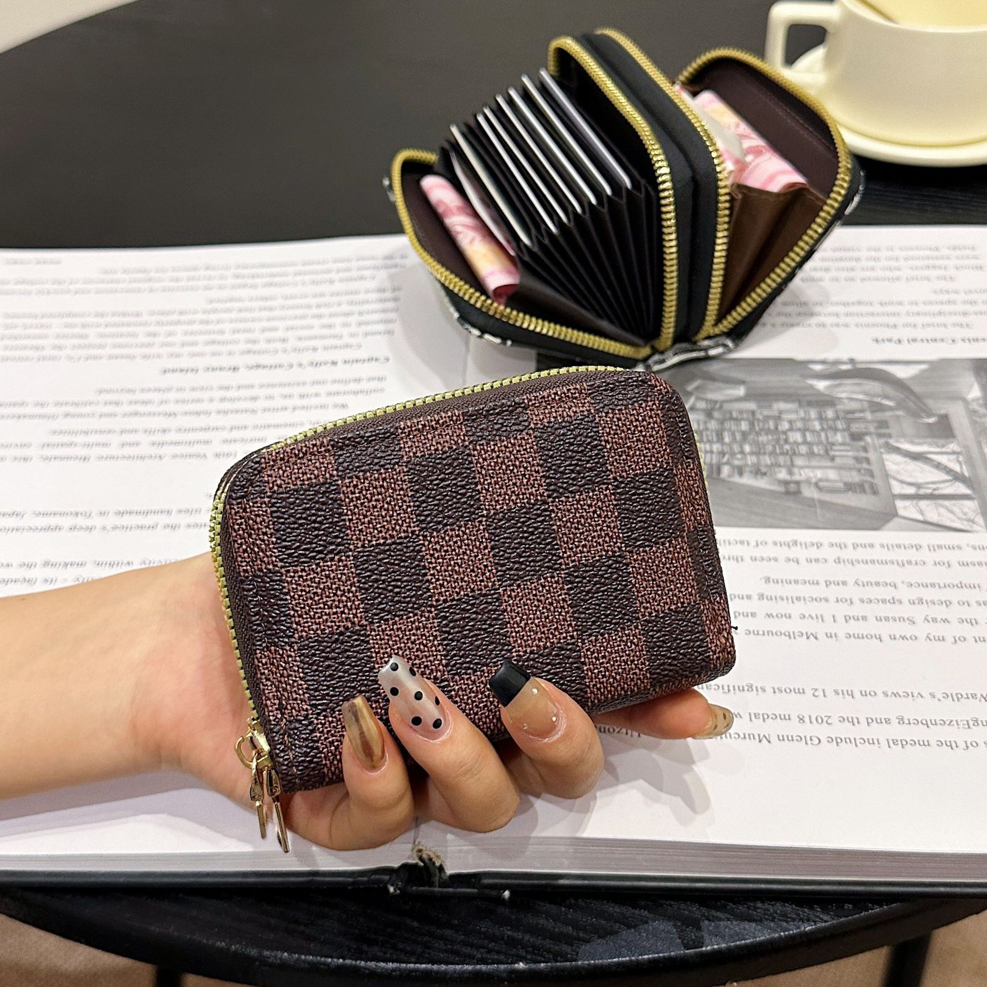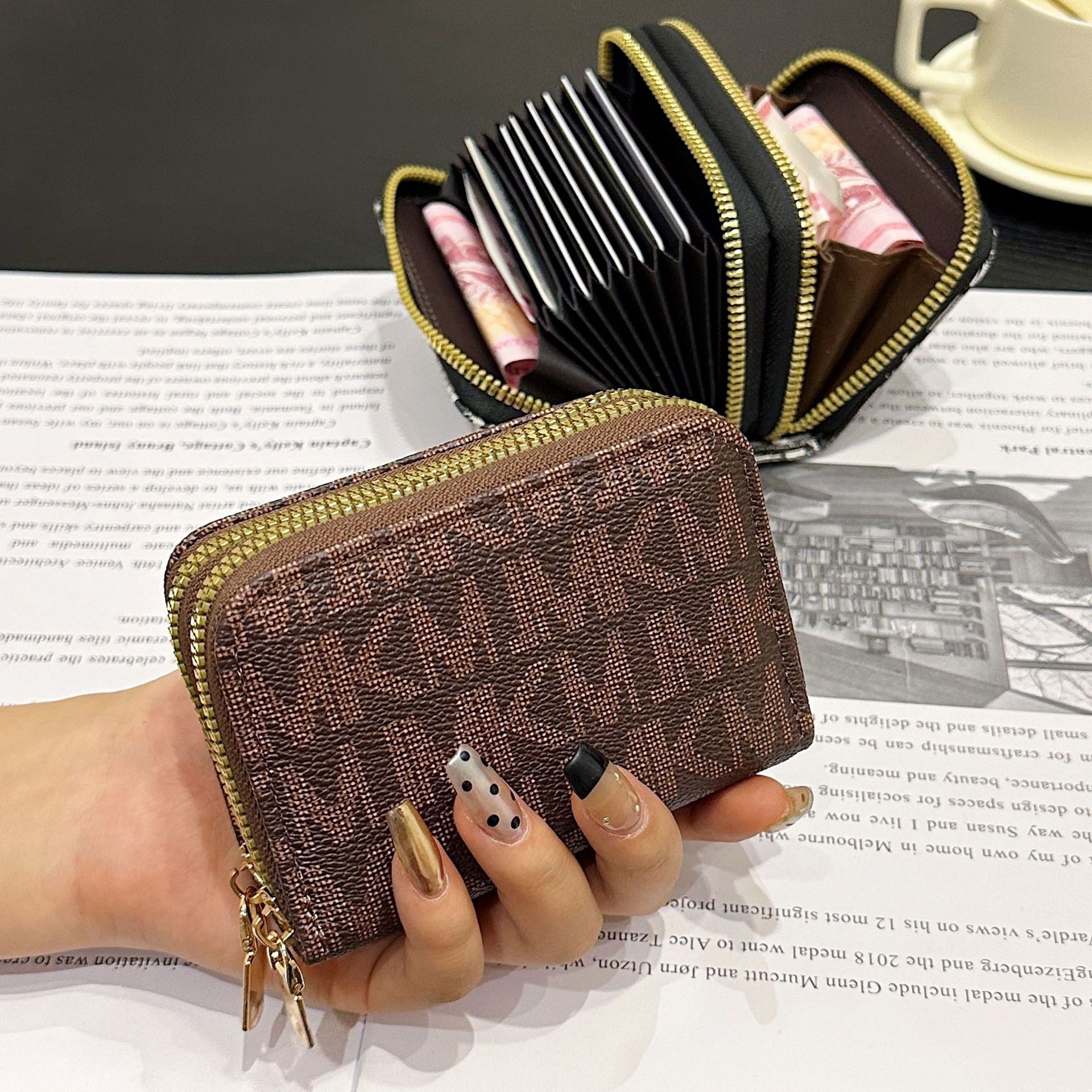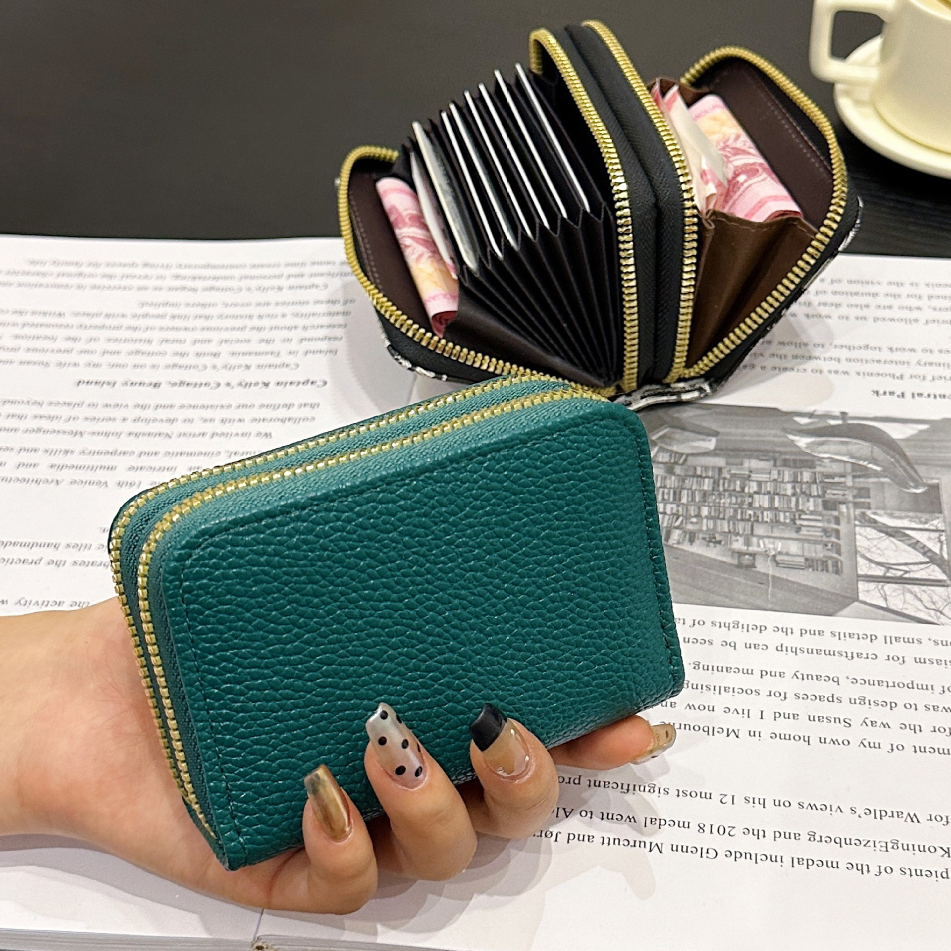 더블 레이어 지퍼 카드 홀더 여성의 작은 안티-degaussing 은행 카드 홀더 멀티 카드 카드 홀더 운전 카드 동전 지갑