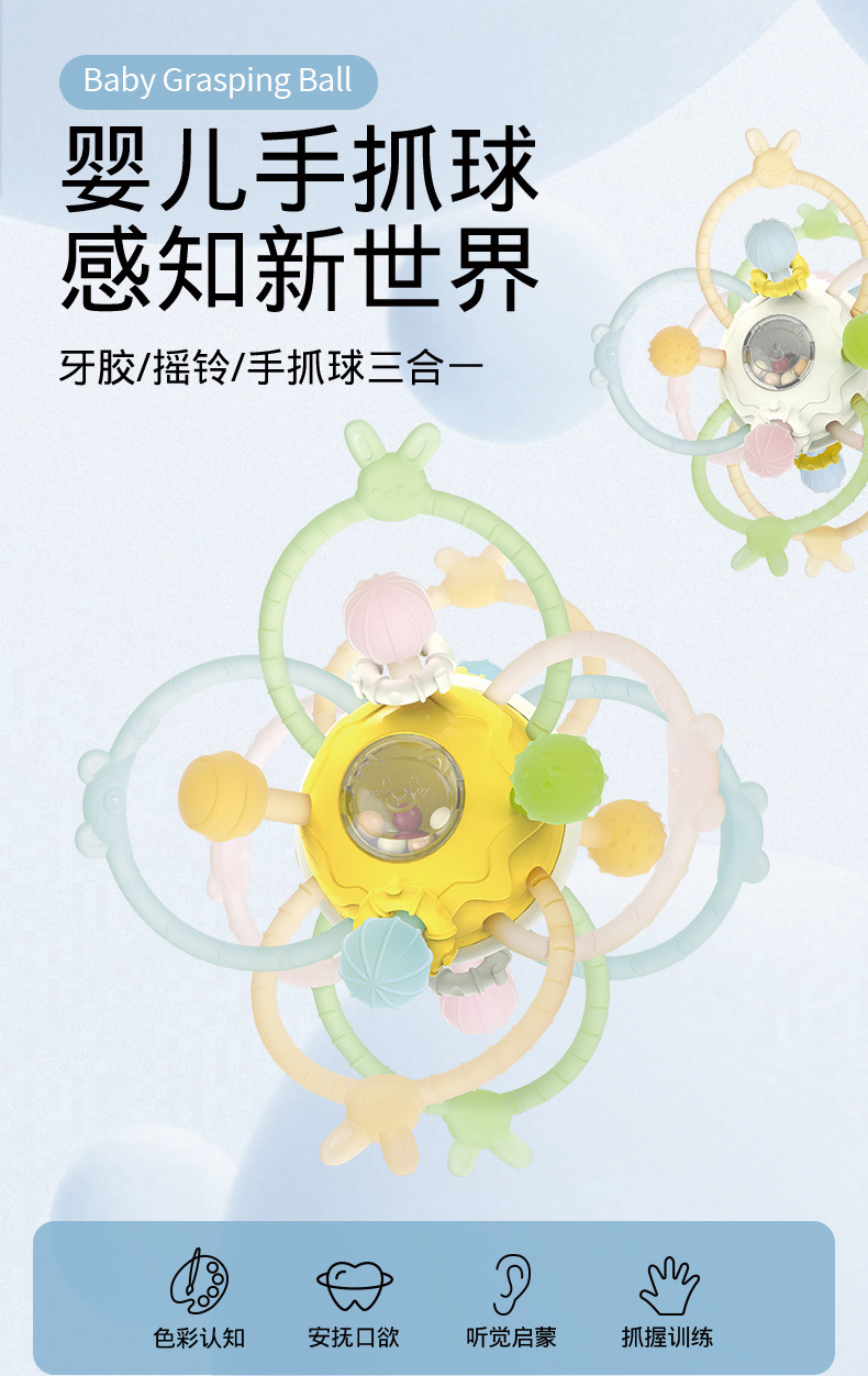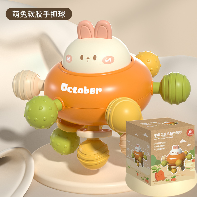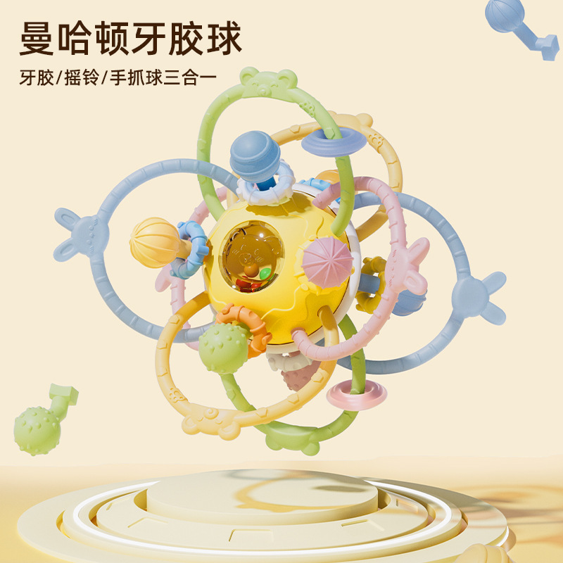 맨해튼 아기 손 스크래치 볼 치아 젤 벨 볼 아기 실리콘 물린 치아 바 0-1 년 된 진정 장난감