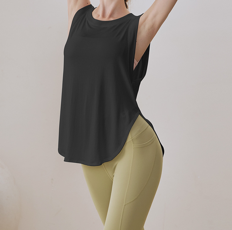 여성용 슬리밍 피트니스 트레이닝 탑 민소매 러닝 블라우스 엉덩이 커버 요가 티셔츠